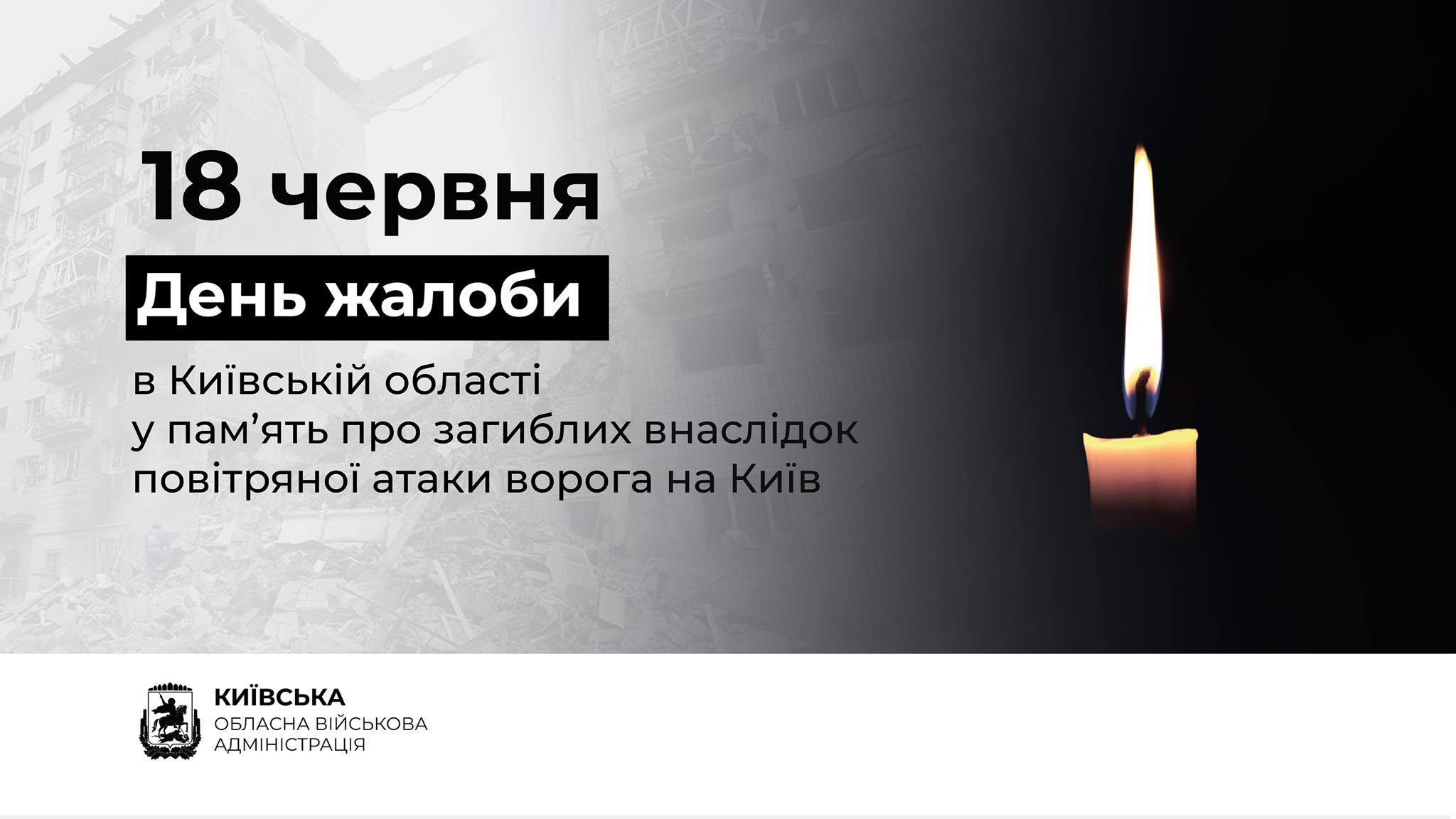 В Київській області 18 червня оголошено Днем жалоби за загиблими внаслідок жахливої ворожої атаки на Київ. Цей день є символом скорботи та пам’яті за невинними жертвами.