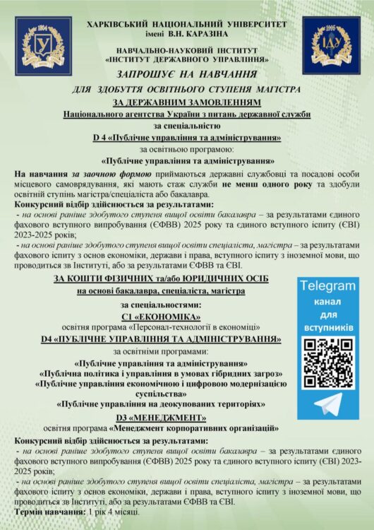 З огляду на зазначені потреби, Харківський національний університет імені В. Н. Каразіна, у співпраці з Представництвом Президента України в Автономній Республіці Крим, розробив унікальну освітню програму «Публічне управління на деокупованих територіях». Ця програма призначена для здобувачів другого (магістерського) рівня вищої освіти за спеціальністю «Публічне управління та адміністрування». Її головна мета – підготовка фахівців, здатних ефективно працювати в умовах перехідного періоду та сприяти відновленню нормального життя на деокупованих територіях.