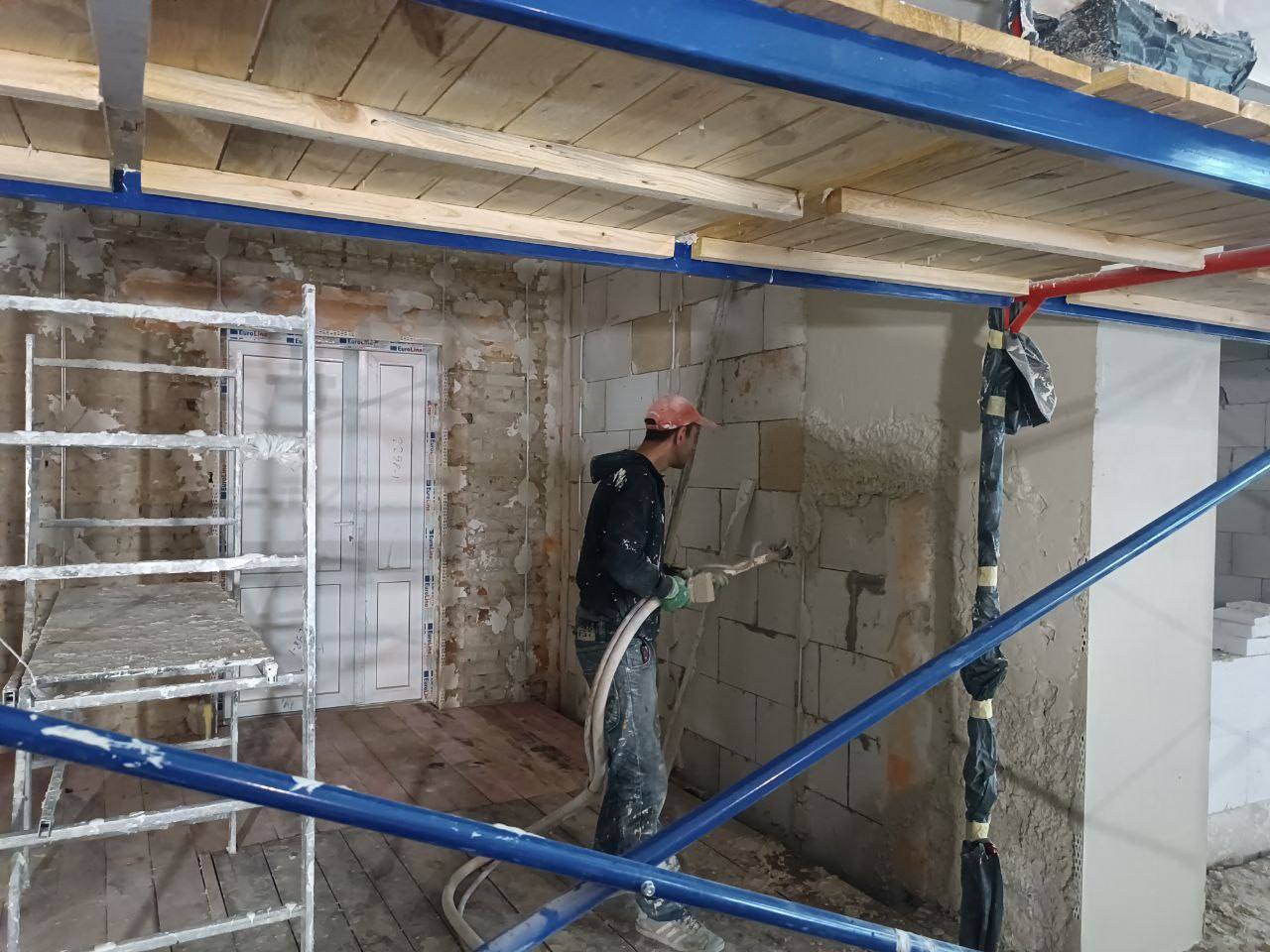На даний момент, будівельники зосереджені на ключових етапах ремонту. Стіни активно готуються до фінішної обробки, зокрема, проводиться штукатурення. Також, було прокладено нові системи водопостачання та каналізації до санвузла, що значно покращить комфорт перебування у приміщенні. Важливим етапом стало оновлення підлоги – пошкоджені елементи замінено на нові дошки, які створюють міцну та надійну основу для майбутнього простору.