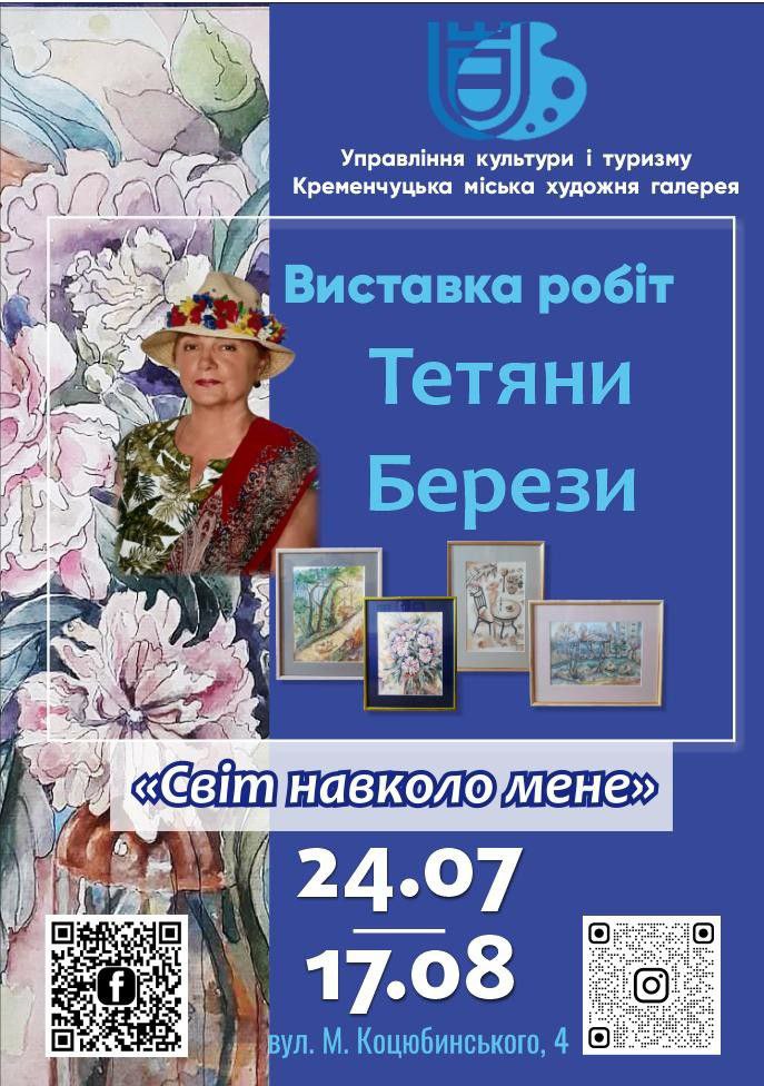 📍 Не пропустіть урочисте відкриття цих мистецьких подій, яке відбудеться 24 липня о 14:00 у Кременчуцькій міській художній галереї. Галерея розташована за адресою: вул. Михайла Коцюбинського, 4. Це чудова нагода насолодитися різноманіттям мистецьких форм та підтримати місцевих митців.