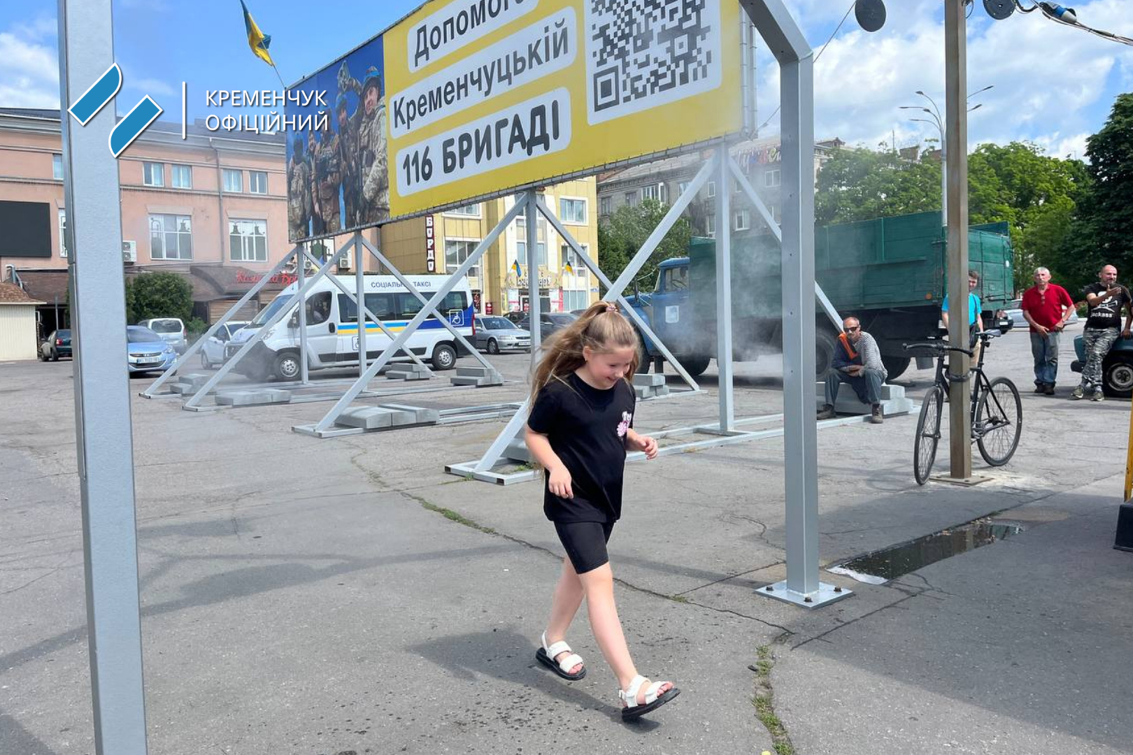 У Кременчуці з’явилася автоматизована охолоджувальна арка! Працівники КП «Кременчукводоканал» встановили цю чудову конструкцію на площі Незалежності, щоб врятувати містян від спеки. Кременчук стає комфортнішим містом для життя, і це чудова новина для всіх нас!
