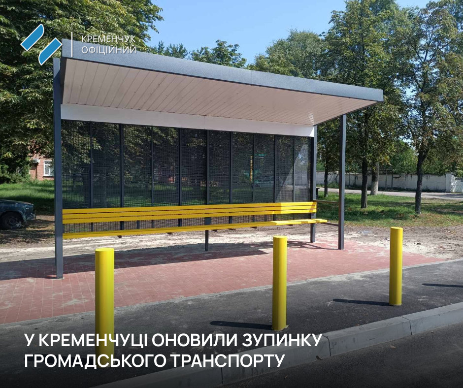 🚌 У Кременчуці на мікрорайоні Ревівка оновили зупинку громадського транспорту «вул. Юрія Кондратюка» (у напрямку в місто). Тепер чекати транспорт жителям мікрорайону тут буде зручніше — незалежно від погоди.