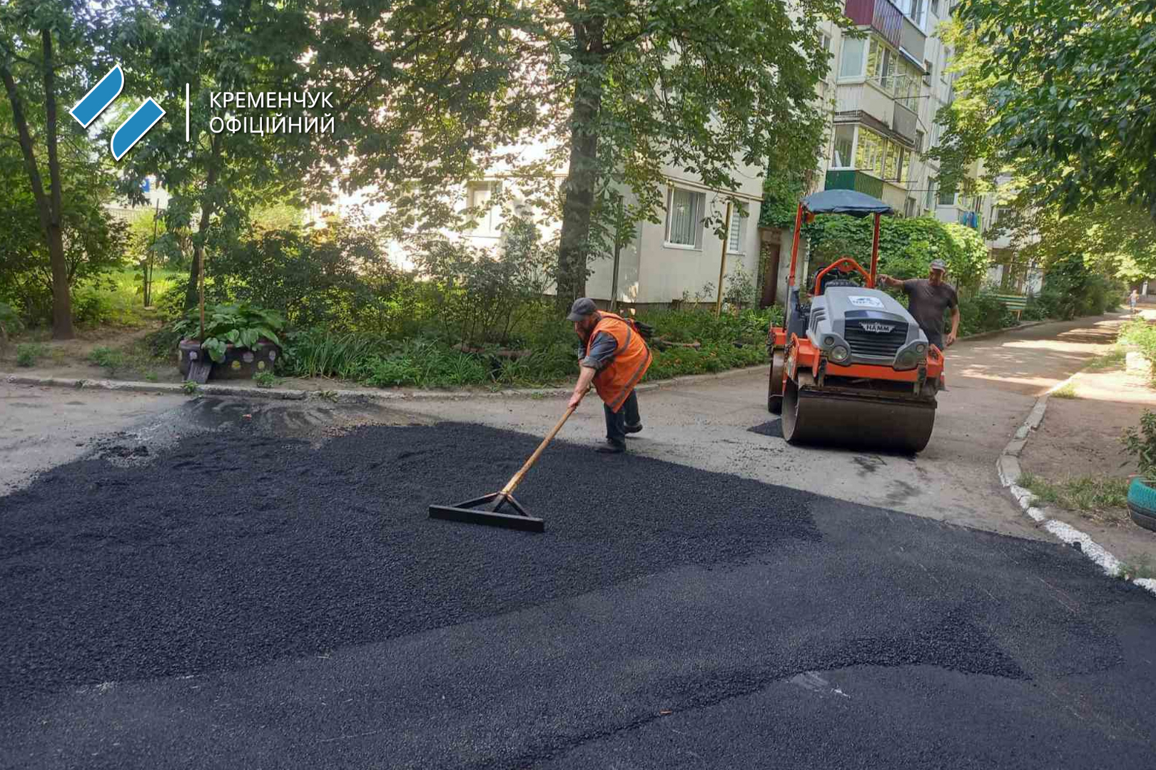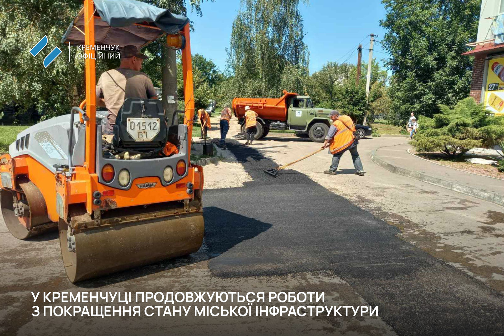 🔸 поточний ремонт асфальтобетонного покриття внутрішньоквартальних проходів та проїздів — вул. Київська, вул. Кременчуцьких Артилеристів;