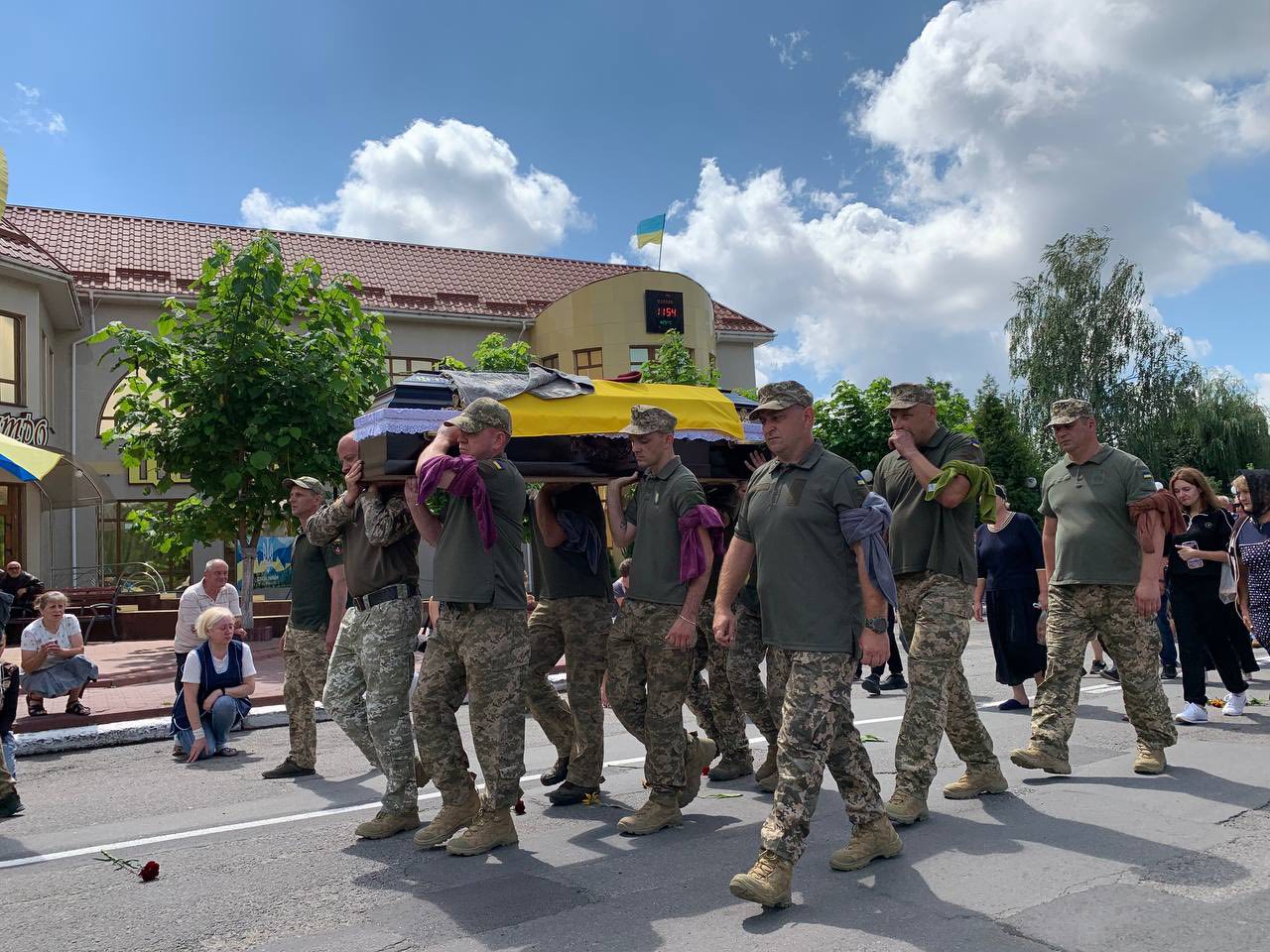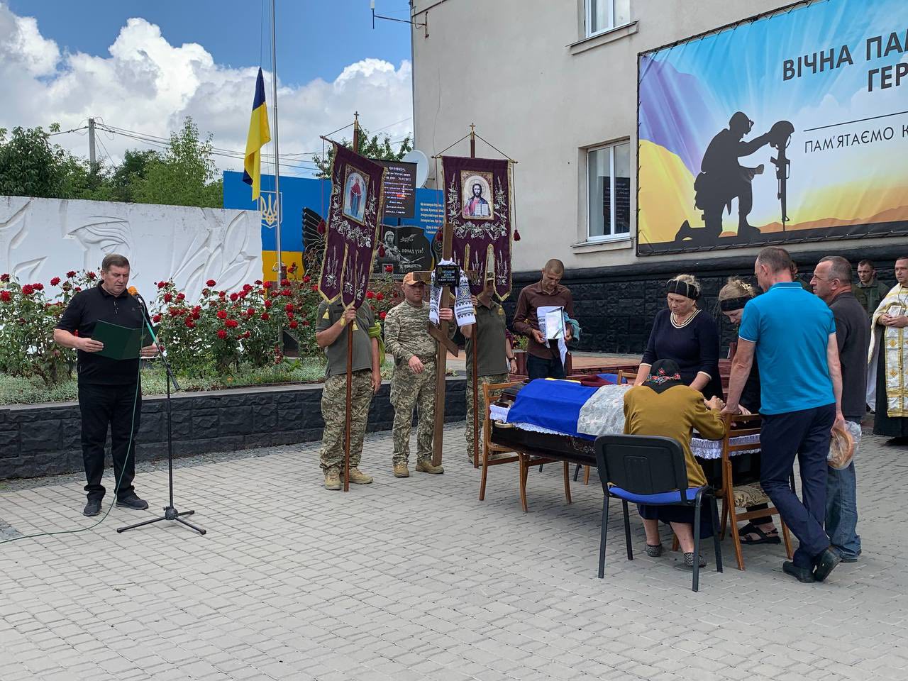 Церемонія прощання зібрала жителів громади, які прийшли віддати шану полеглому Герою та висловити глибокі співчуття його рідним і близьким. Скорботний захід, що відбувся у центрі селища, вразив присутніх живим коридором, викладеним квітами та прапорами, що зустрічав траурний кортеж. Біль і туга огортали кожного, хто усвідомлював ціну такої втрати.