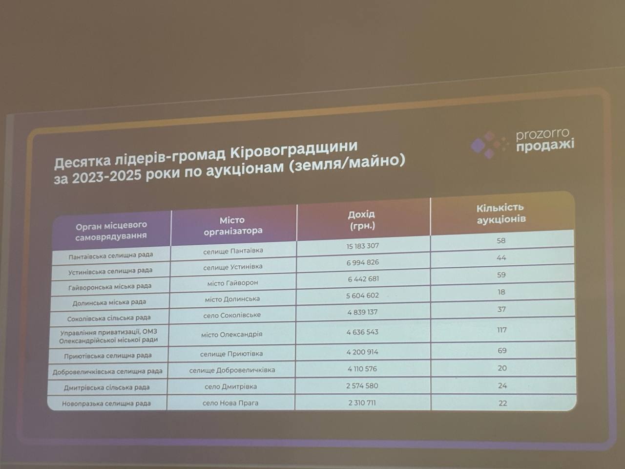 Рейтинг громад Кіровоградщини: Доходи від аукціонів Prozorro