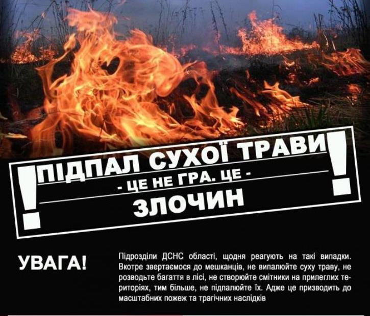 - Притягнення порушників до відповідальності за статтею 77-1 КУпАП (штрафи від 3 060 до 6 120 грн за випалювання стерні, луків, тощо). За ті самі дії на територіях природно-заповідного фонду – штрафи від 6 120 до 12 240 грн для громадян та від 21 420 до 30 600 грн для посадових осіб.