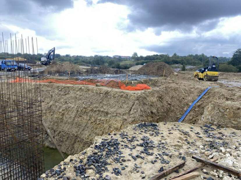 На даний момент будівельні роботи прогресують відповідно до встановленого графіка, попри складні погодні умови, зокрема значний обсяг завдань та сезонний паводок. Були успішно завершені підготовчі та земляні роботи, а також закладено міцний фундамент для майбутніх конструкцій. Активно ведеться будівництво ключових елементів очисних споруд, включаючи: