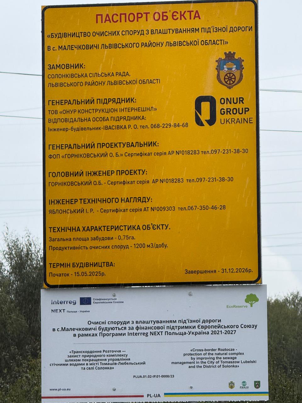 У Малечковичах активно триває важливе для Солонківської територіальної громади будівництво сучасних очисних споруд. Цей масштабний проєкт реалізується в рамках ініціативи «Транскордонне Розточчя – охорона природного комплексу шляхом покращення управління стічними водами в місті Томашів Любельський та районі Солонка». Фінансова підтримка надходить від програми Interreg Next Польща-Україна 2021–2027, а також здійснюється співфінансування з коштів Європейського Союзу. Проєкт спрямований на суттєве покращення екологічної ситуації та підвищення якості життя мешканців громади шляхом модернізації систем очищення стічних вод.