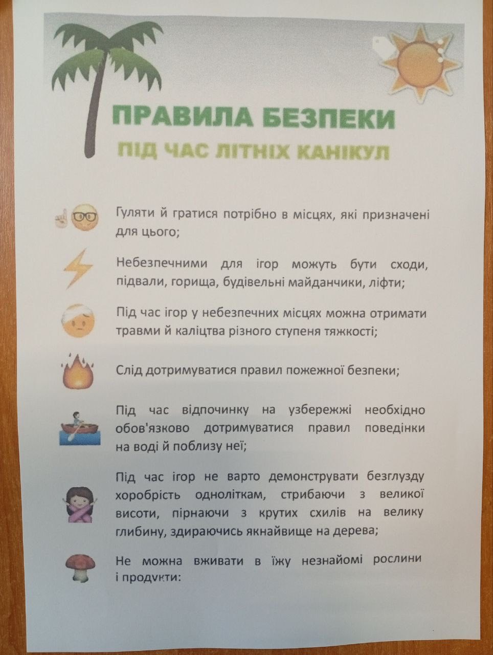 У межах профілактичної кампанії “Безпечні канікули” 24 червня 2025 року відбувся спільний рейд представником соціальної служби та начальником служби у справах дітей. Під час заходу фахівці відвідали родини з дітьми, провели роз’яснювальні бесіди засад відповідального батьківства, щодо дотримання належних умов для проживання та розвитку дітей, щодо правил безпечної поведінки влітку, перебування біля води, на дорозі. Особливу увагу приділено дітям із сімей у складних життєвих обставинах. Були розладі брошури данних тематику. Мета рейду — запобігти нещасним випадкам та забезпечити безпечний літній відпочинок для всіх дітей.