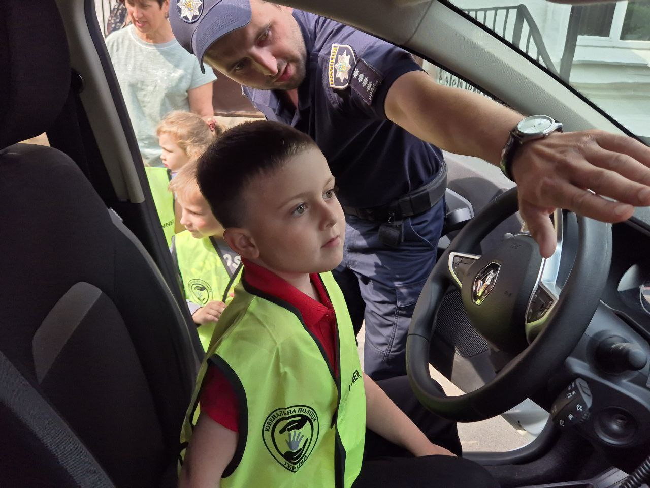 Ознайомлення з професією поліцейського стало захопливою частиною зустрічі. Діти мали можливість оглянути службовий автомобіль, дізнатися про його спеціальне обладнання та послухати сирену. Поліцейські продемонстрували обладнання, яке використовується під час роботи, та відповіли на запитання дітей. Безпека дітей завжди у центрі уваги поліції.