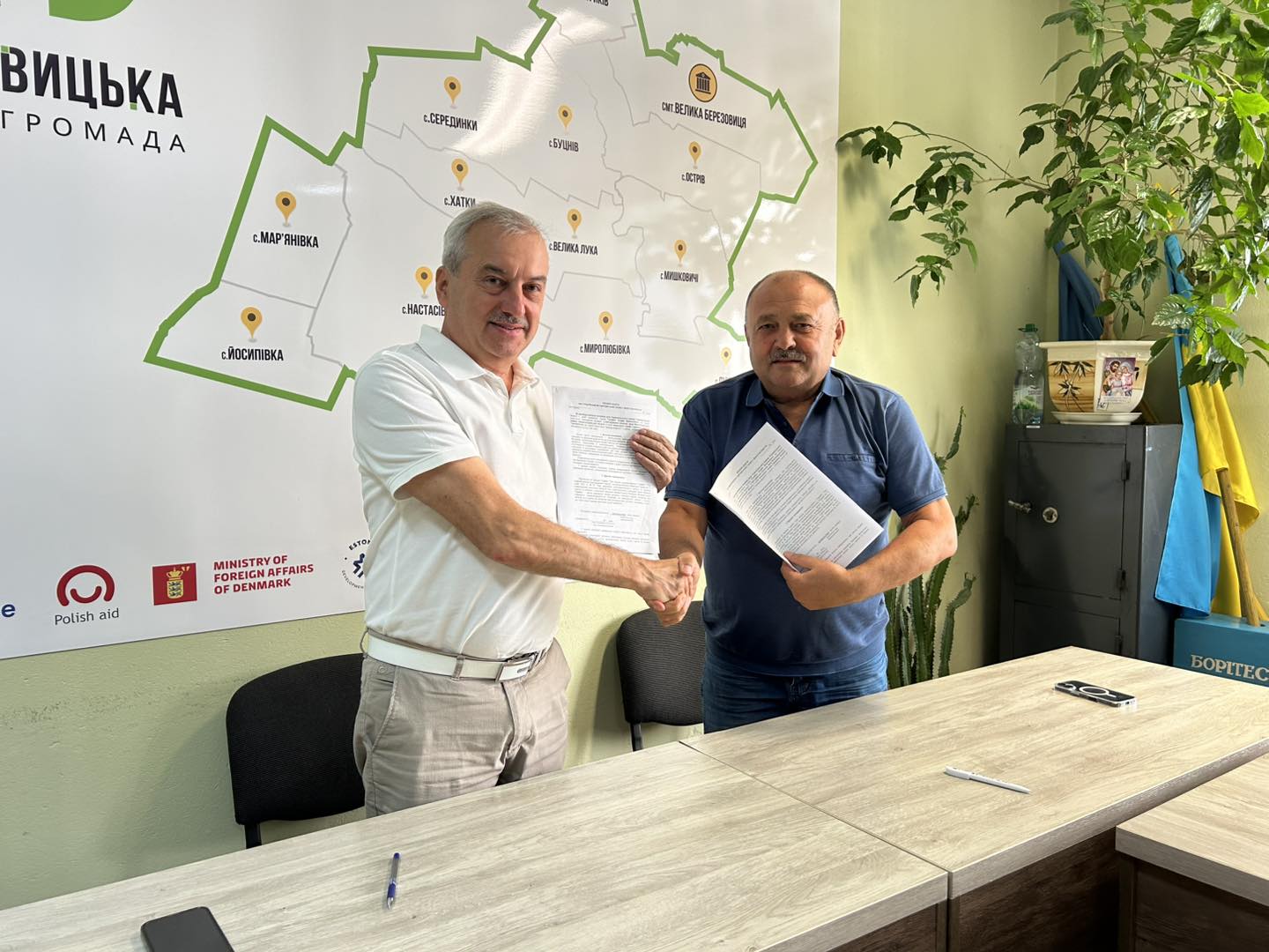 ✍🏼У межах важливого національного проєкту «Пліч-о-пліч: Згуртовані громади» Великоберезовицька селищна рада успішно розширила свою мережу партнерства, підписавши ще один стратегічний меморандум про співпрацю. Ця ініціатива спрямована на зміцнення зв’язків між українськими громадами, посилення їхньої стійкості та взаємної підтримки в умовах війни.