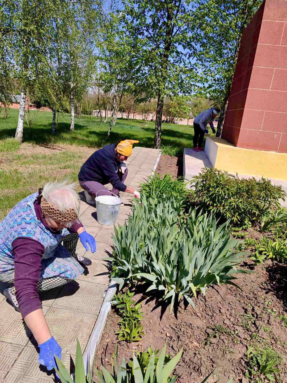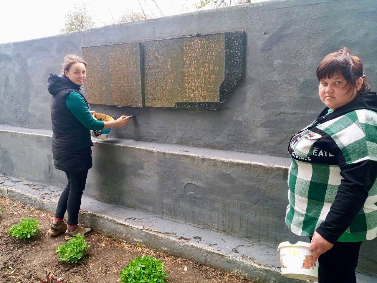 Працівники благоустрою, клубні працівники та працівники бібліотеки доклали максимум зусиль, щоб місця пам’яті виглядали охайно та доглянуто. Побілка стел, висадження квітів та прибирання території – це лише частина робіт, які були виконані для належного вшанування пам’яті загиблих у Другій світовій війні.