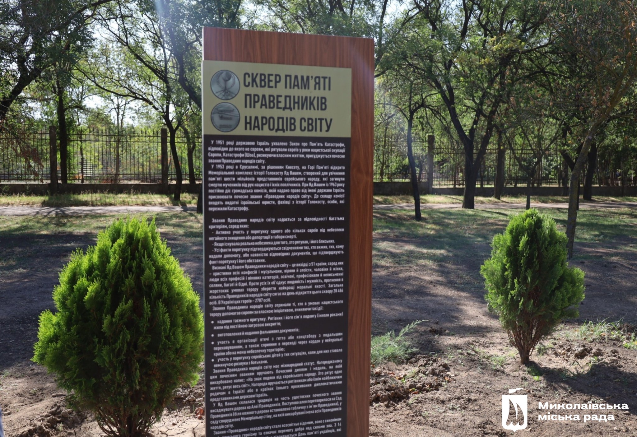 🌳 У Миколаєві урочисто відкрили оновлений сквер “Пам’яті праведників народів світу”. Це місце, що стало символом вдячності та пам’яті, тепер вражає своєю красою та комфортом після масштабного благоустрою. Міська влада спільно з представниками єврейської громади доклали максимум зусиль, щоб перетворити цей простір на справжню оазу спокою.