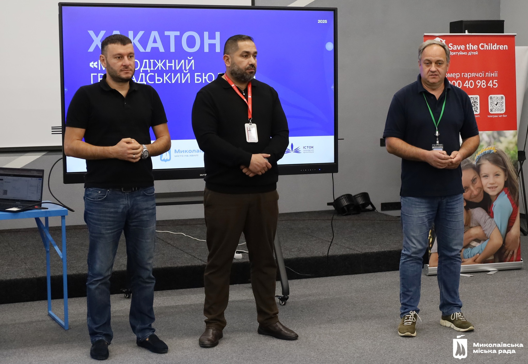 На відкритті хакатону учасників привітали поважні гості: директор Південного регіонального офісу Save the Children в Україні Мусана Алхаю, перший заступник Миколаївського міського голови Віталій Луков та начальник управління молодіжної політики міськради Арсен Гаспарян.