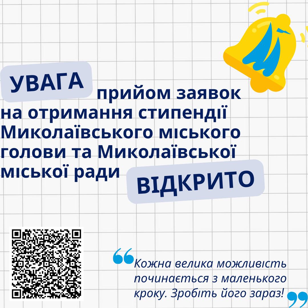 У Миколаєві стартував важливий процес прийому заявок на здобуття стипендії міського голови та міської ради. Ця стипендія є чудовою нагодою для юних та талановитих мешканців міста, які демонструють видатні успіхи у навчанні, науковій діяльності, культурі, спорті чи активній громадській роботі, отримати заслужену фінансову підтримку.