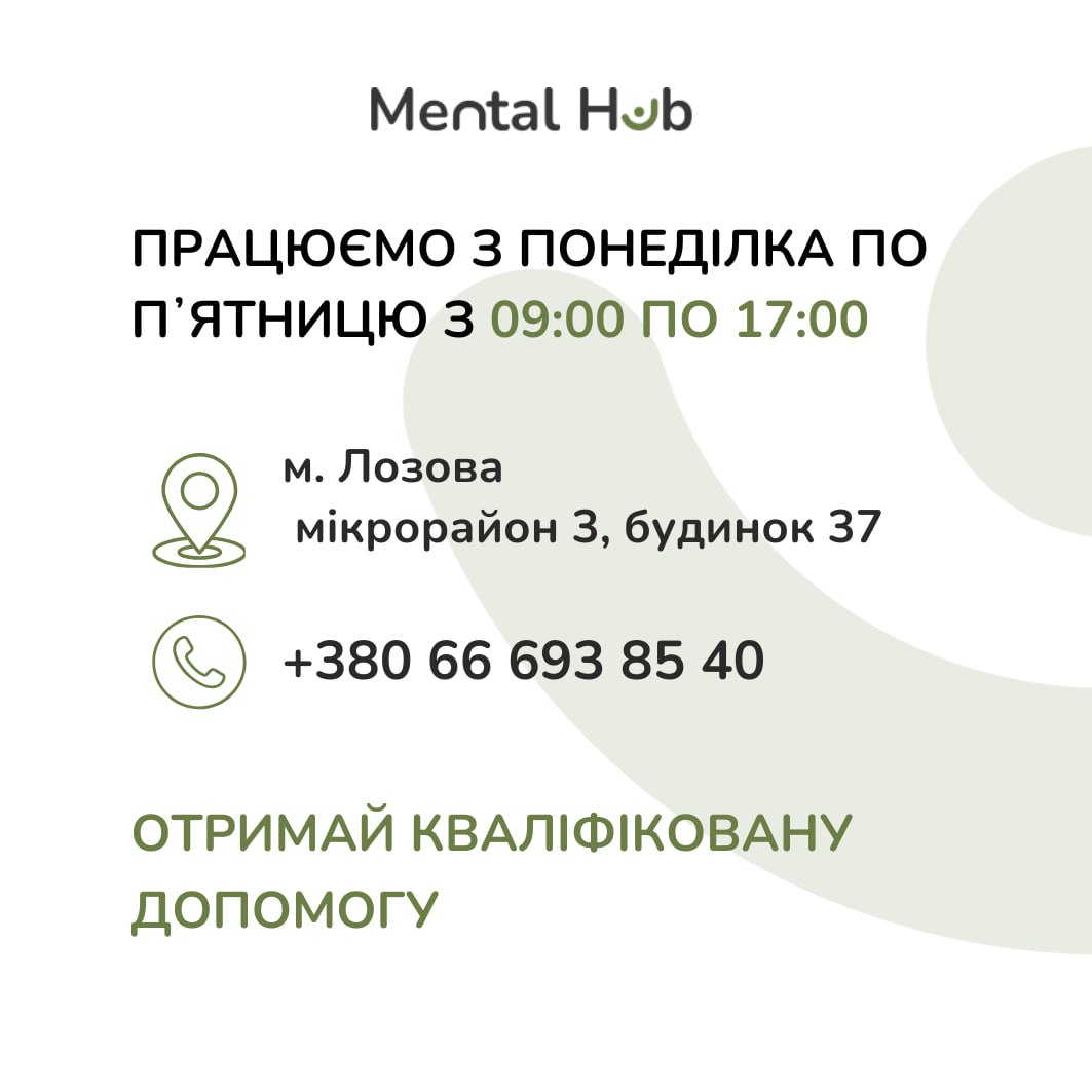 Для попереднього запису та отримання додаткової інформації, будь ласка, телефонуйте за номером ☎️ 066 693 85 40. Громадський центр MentalHub з нетерпінням чекає на кожного, хто прагне покращити своє психологічне благополуччя та знайти підтримку.