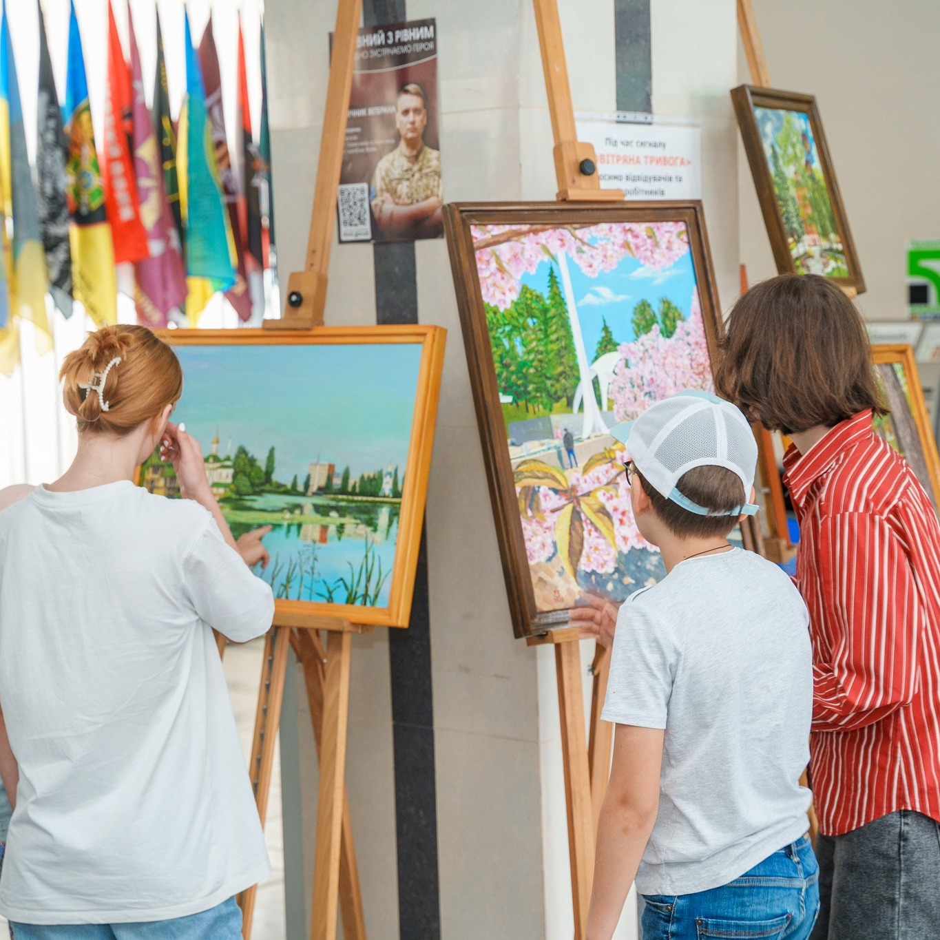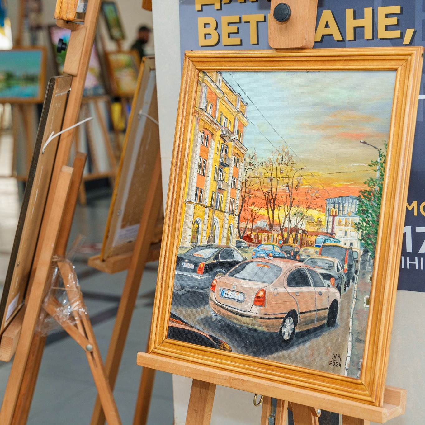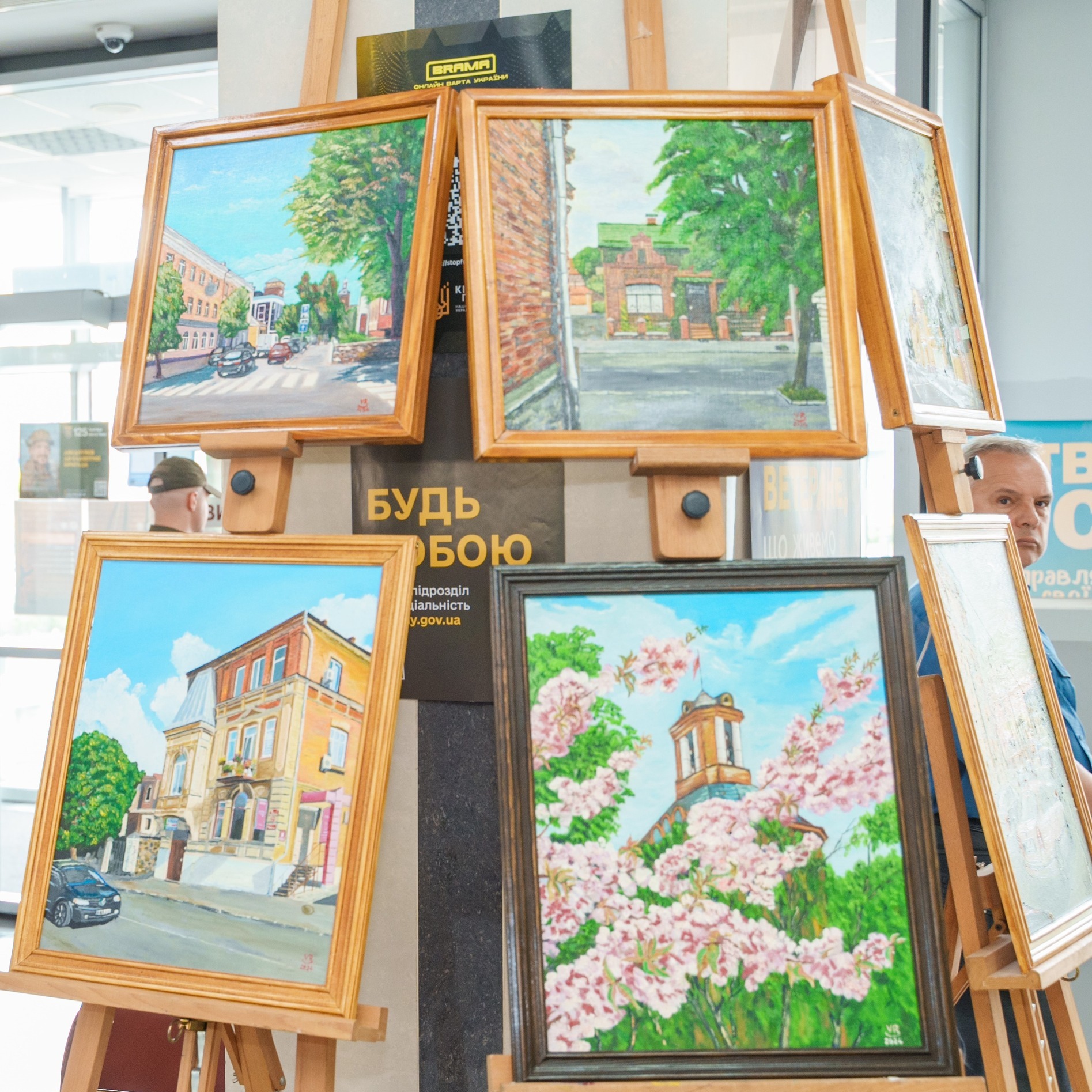 На картинах — архітектурні перлини Вінниці: Вежа Артинова, арка на Калічанській, старі двори, а також символічний образ воїна біля Вежі. Виставка акцентує увагу на проєктах творців міського простору.