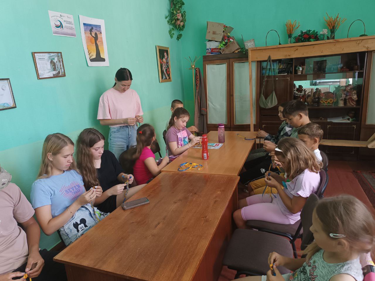 📍 У Будинку культури Веприцького старостинського округу пройшов майстер-клас із плетіння патріотичних браслетів-оберегів для дітей родин військовослужбовців.