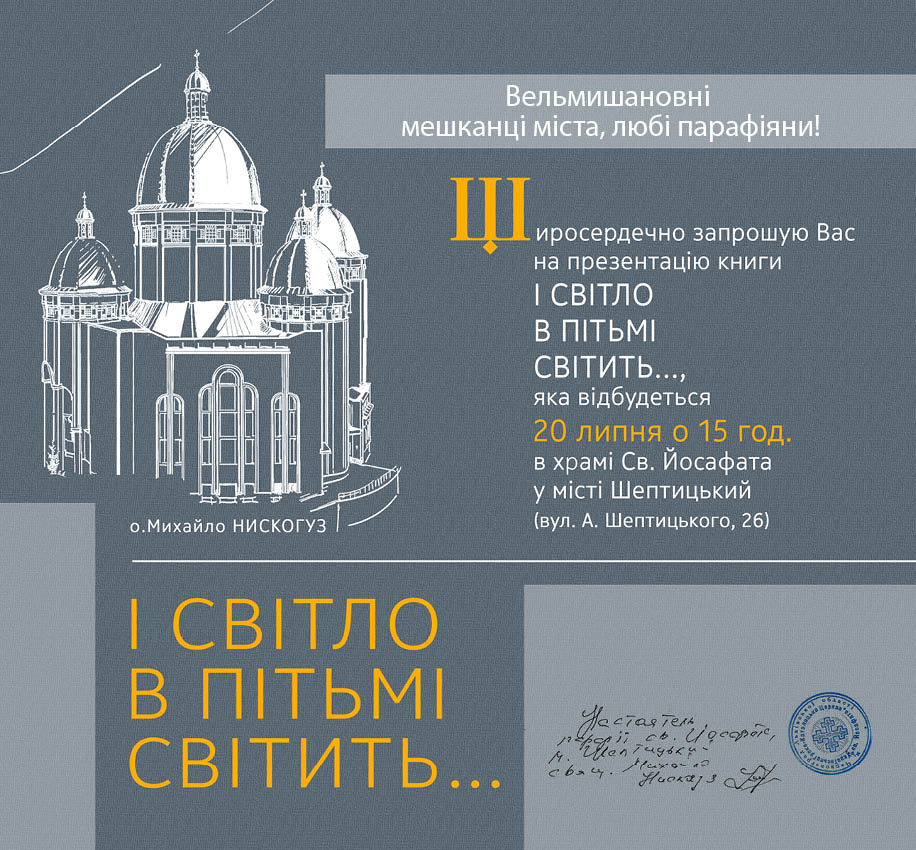У неділю, 20 липня, о 15:00 у церкві святого Йосафата відбудеться презентація книги отця Михайла Нискогуза «І світло в пітьмі світить».