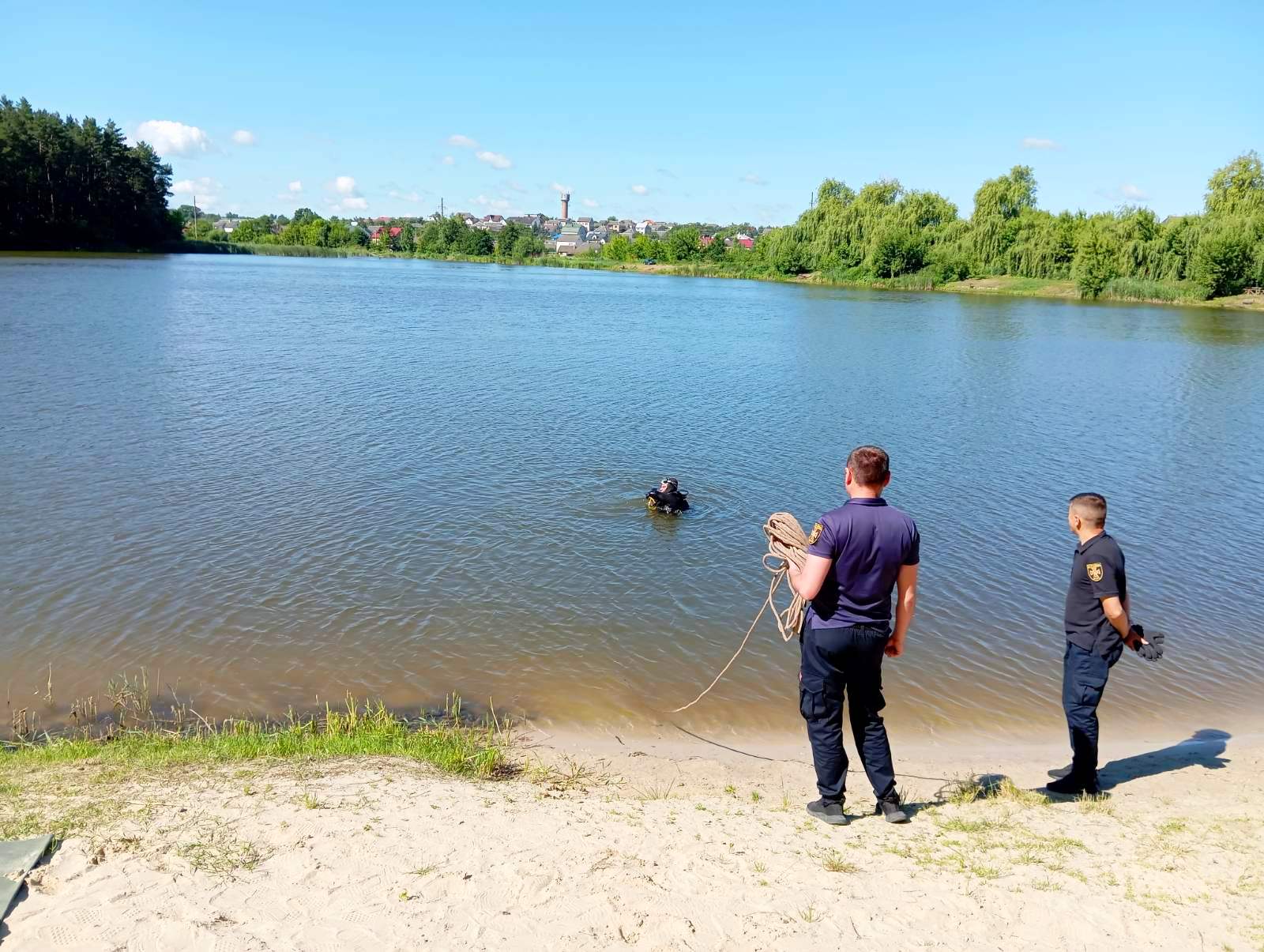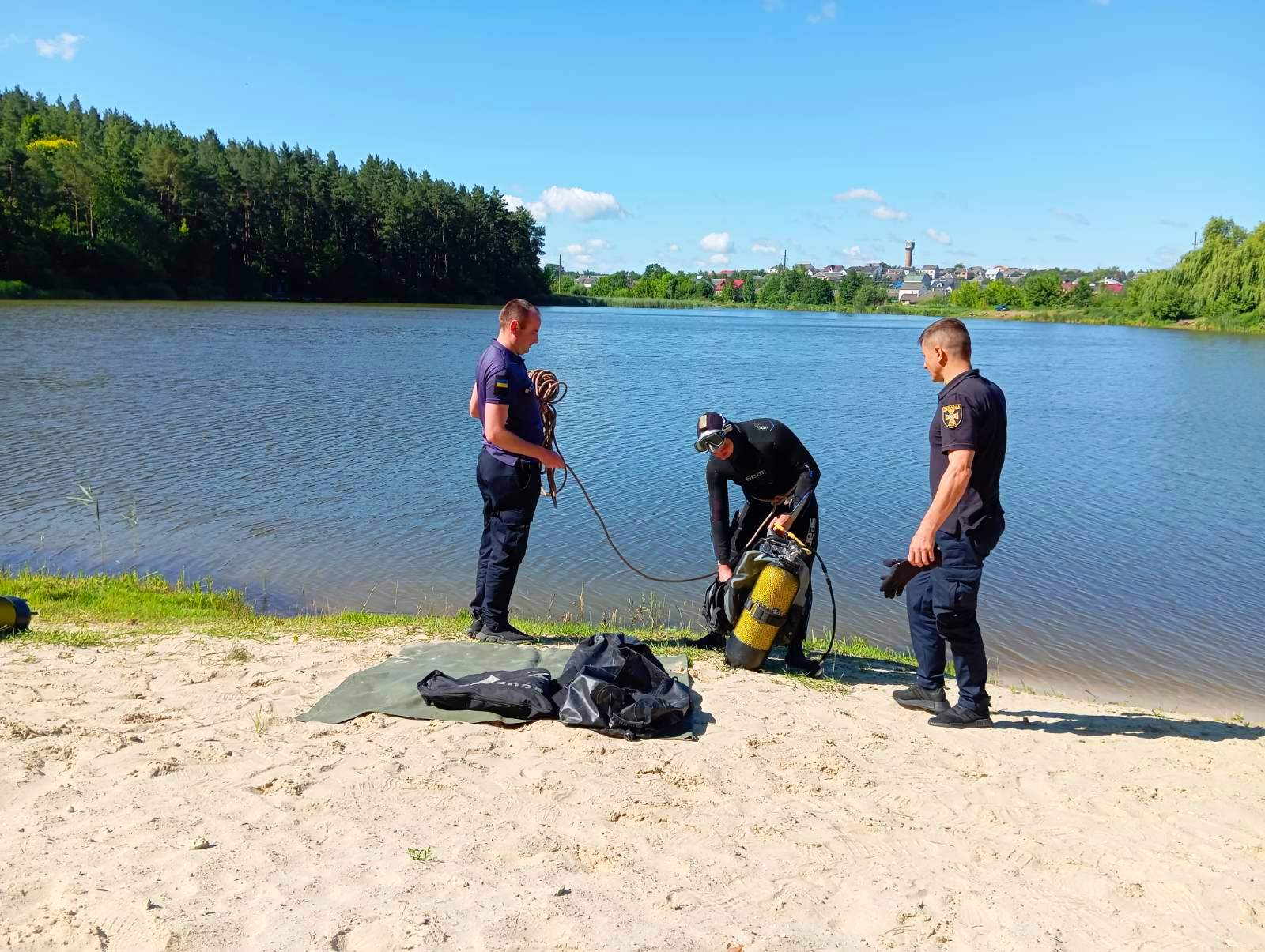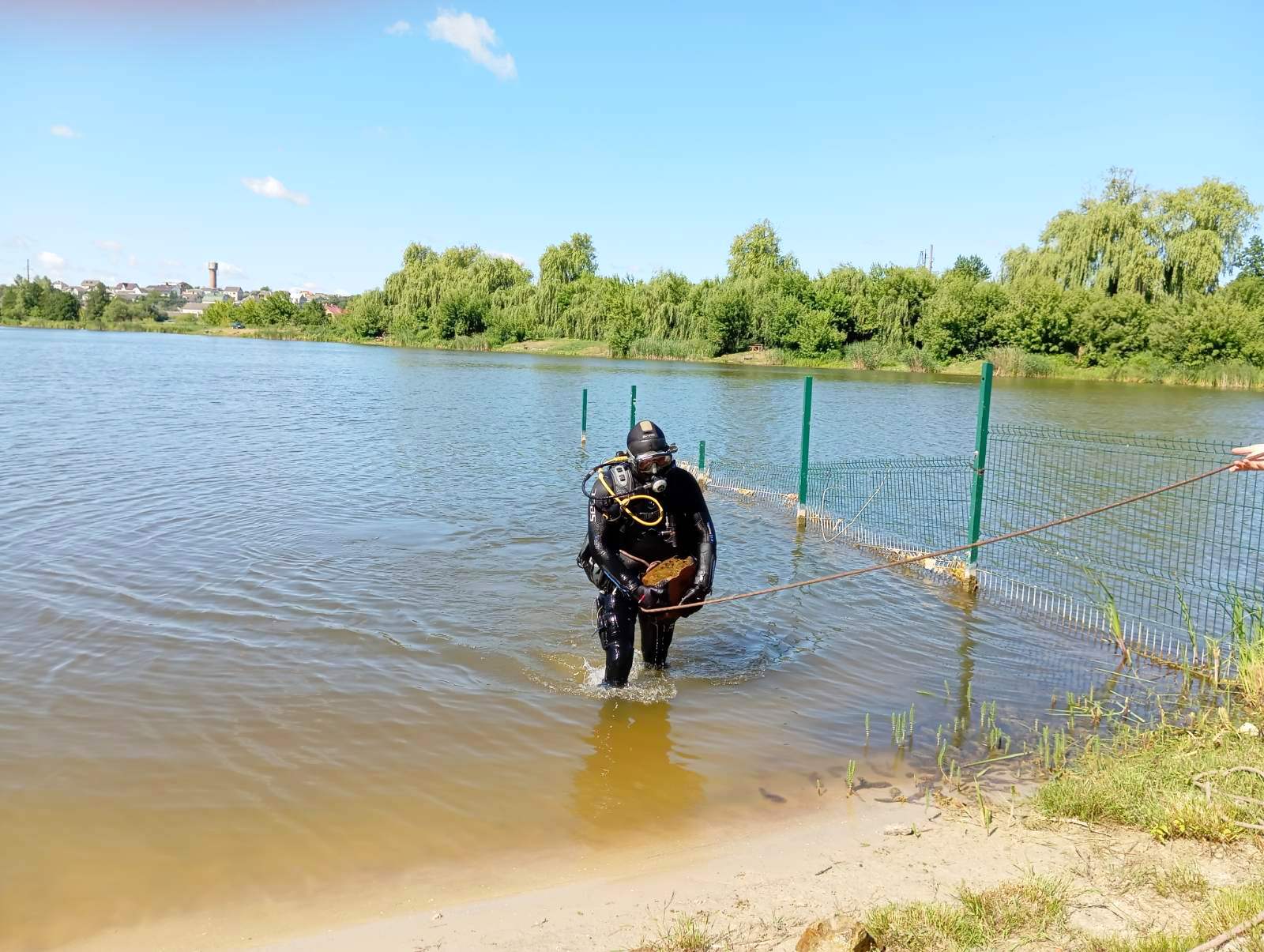У парку «Соснина» в місті Шумськ працівники аварійно-рятувального загону спеціального призначення Головного управління ДСНС України провели обстеження озера. Здійснено очищення дна водойми від сторонніх предметів, щоб запобігти травматизму серед населення.