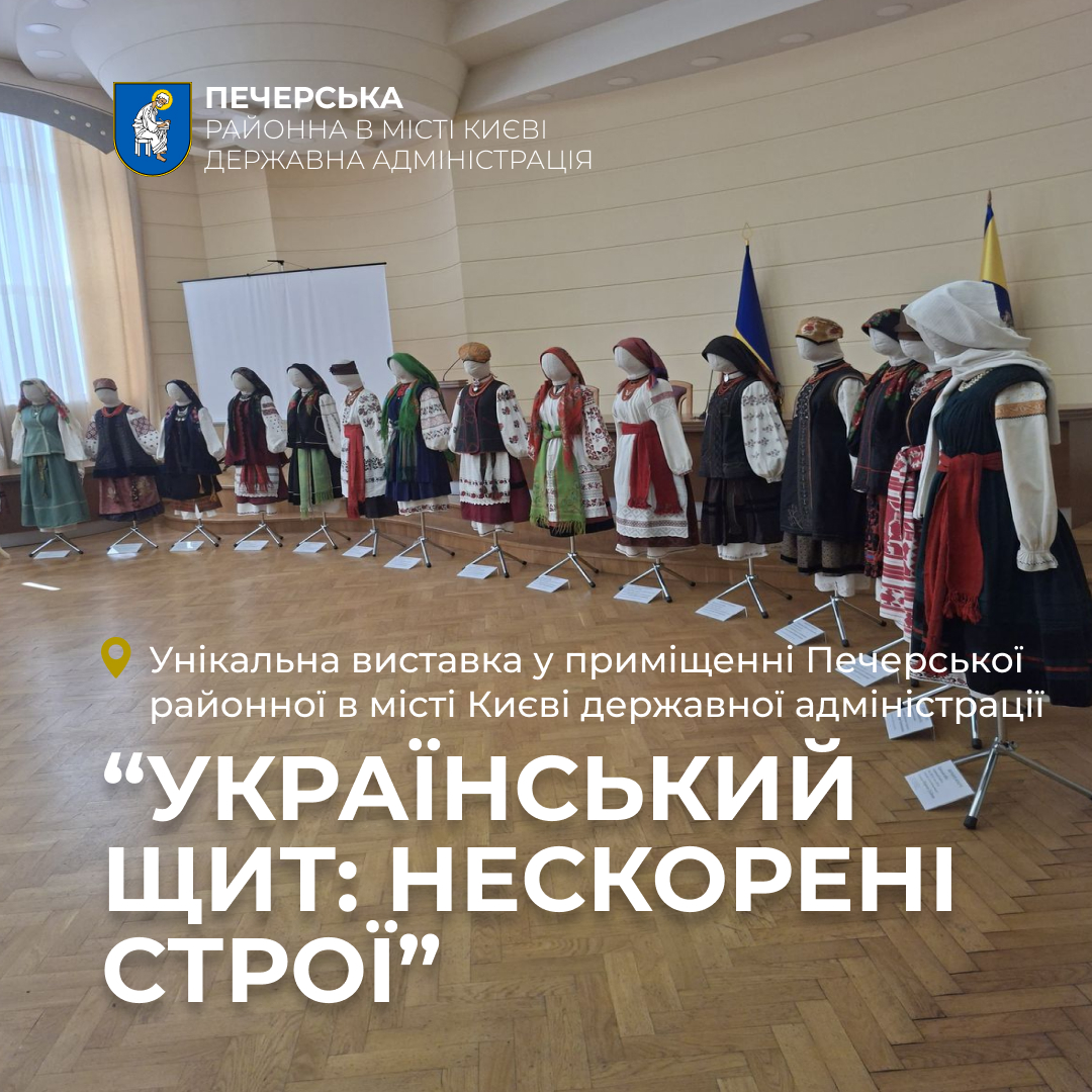 ⚡У приміщенні Печерської районної в місті Києві державної адміністрації розгорнулася унікальна виставка під назвою «Український щит: нескорені строї» приурочена до Дня Української Державності. Це не просто мистецький проєкт, а глибокий культурно-етнографічний жест, покликаний віддати шану практично усім українським регіонам, які сьогодні переживають випробування війною, тимчасовою окупацією, обстрілами, але не втрачають своєї культурної ідентичності.