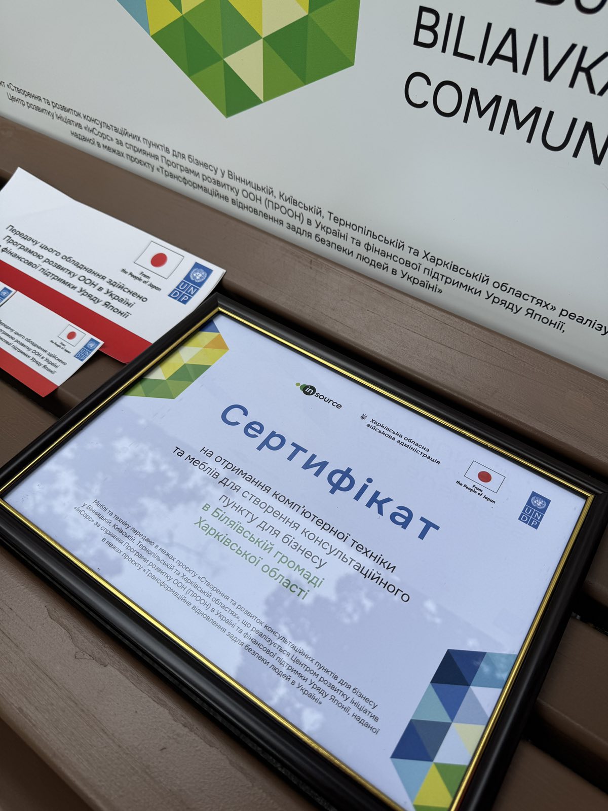 Сертифікати на обладнання отримали представники 39 громад. Серед них – відділ Центру надання адміністративних послуг та державної реєстрації виконавчого комітету Біляївської сільської ради. Облаштування консультативних пунктів для бізнесу надасть можливість підприємцям отримувати необхідну підтримку та консультації на місцях, що сприятиме їхньому розвитку та створенню нових робочих місць.