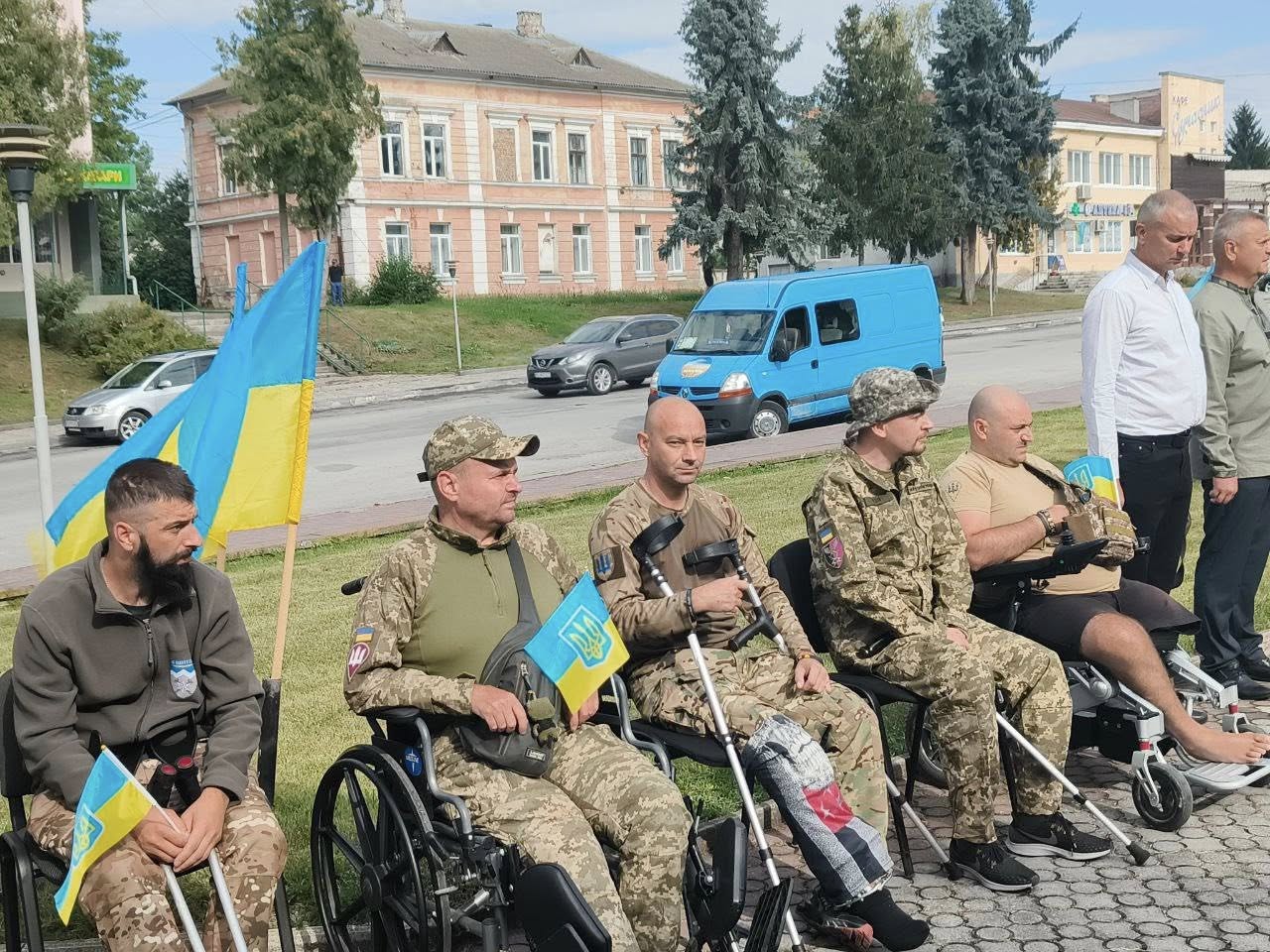 Цьогоріч почесне право підняти державний стяг було надано нашим мужнім воїнам: солдату ЗСУ, який нині перебуває на реабілітації, Віталію Валерійовичу Демішеву та солдату ЗСУ Олегу Євгенійовичу Палащуку. Серед присутніх були й інші захисники: старший сержант ЗСУ Євген Карпенко та солдат ЗСУ Артем Бобриченко.