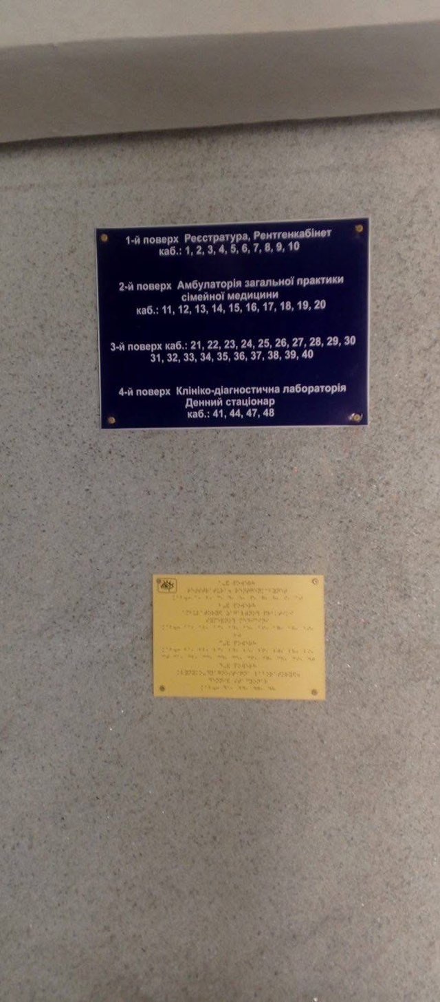 У поліклініці кабінети оснащені табличками зі шрифтом Брайля, а на першому поверсі розміщені адаптовані вказівники для людей із порушенням зору. Відсутність високих порогів, розширені дверні прорізи та зручний ліфт значно полегшують пересування.