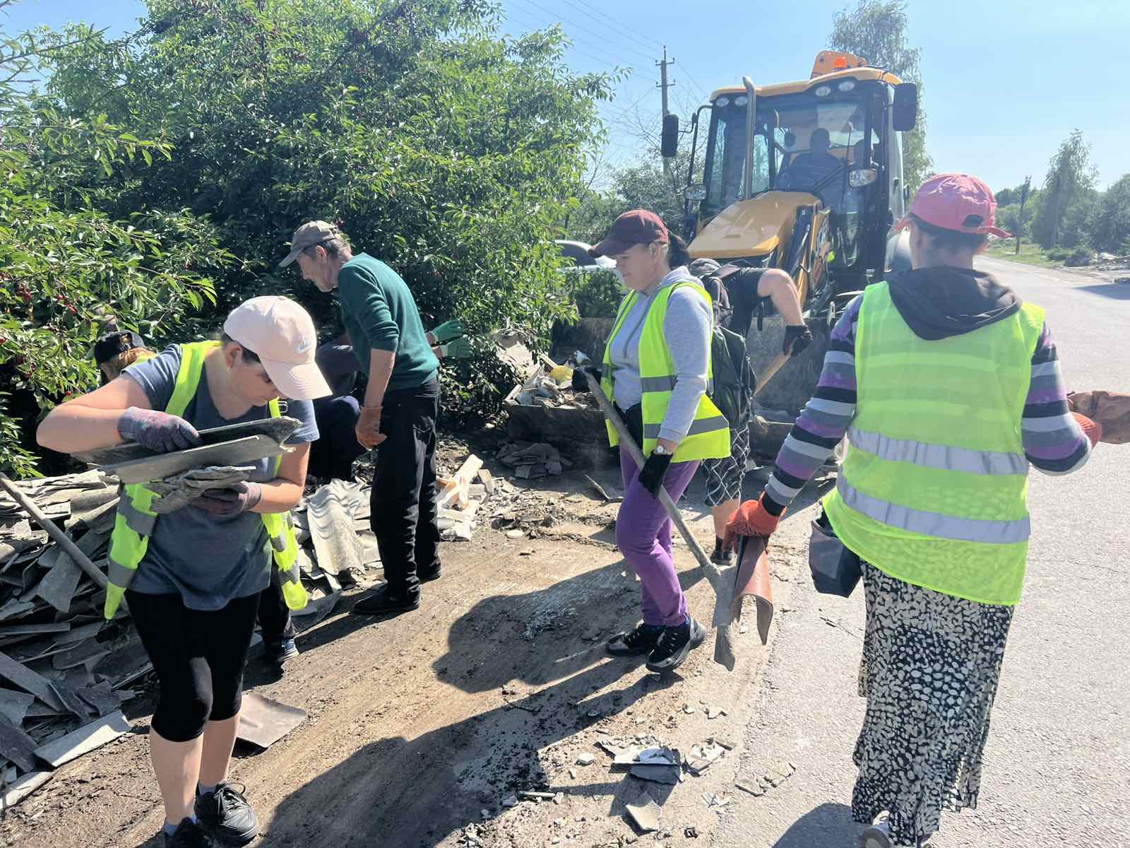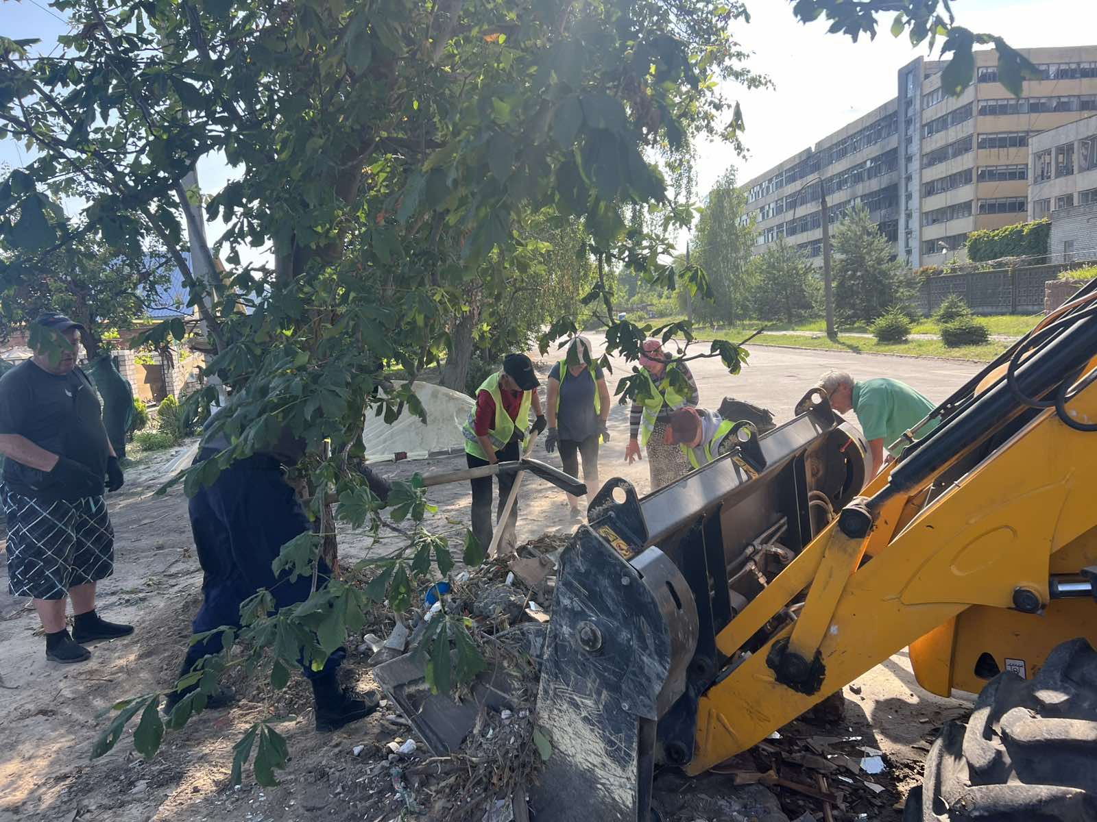 У Ревівському мікрорайоні тривають роботи з прибирання територій біля дворів, які постраждали внаслідок ракетного обстрілу 28 травня. До справи долучилися спецтехніка Сергія Московського (ТОВ «Світловодськпобут»), Володимира Петрова («Альфа Біт»), Романа Шумейка (СМКП «ККП»), а також громадські робітники КП «Житлосервіс-2012».