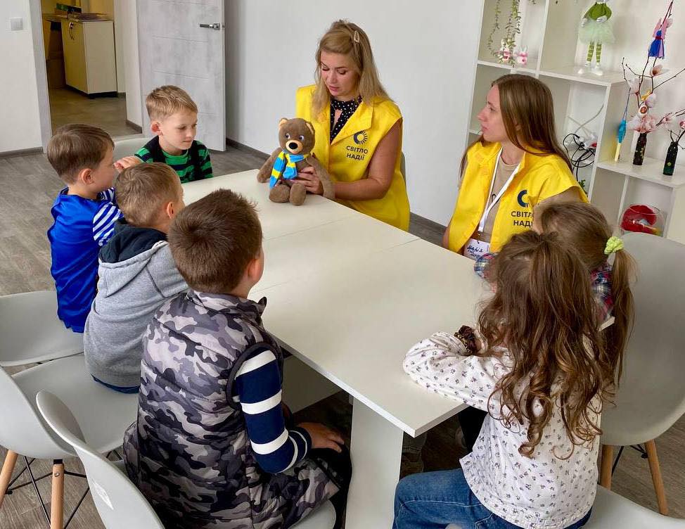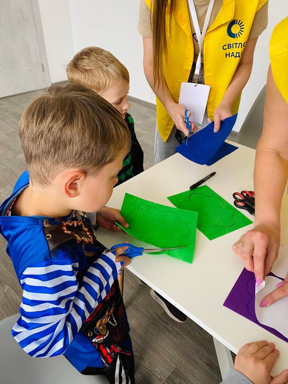 Після знайомства з ведмедиком Ресурсом діти перейшли до практичної частини заняття — виготовлення іграшок з фетру.