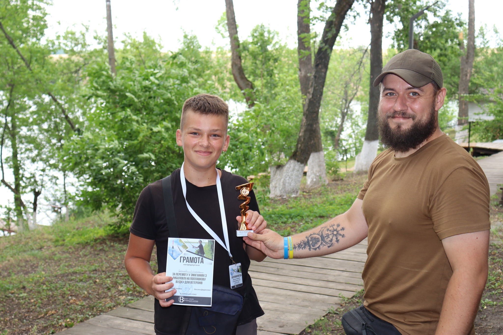 На березі ставка панувала атмосфера дружнього змагання та товариського спілкування. Учасники з ентузіазмом готували свої снасті, обмінювалися досвідом та порадами, згадували армійські будні й з оптимізмом очікували клювання. Найбільш активним рибалкою виявився Олександр КАШУБА, який першим спіймав рибу. Найбільший екземпляр улову дістався Михайлу МІТАЄВУ. Однак, абсолютним переможцем змагань став юний Ярослав П’ЯТАХА, продемонструвавши вражаючий результат – 24 спіймані рибини. Незначно від лідерства відстали Олег МОТУЗКА (21 рибина) та Максим КАРПЕНКО (17 рибин). Загалом, за час змагань було спіймано та безпечно випущено назад у водойму 111 рибин, що свідчить про відповідальне ставлення до природи.
