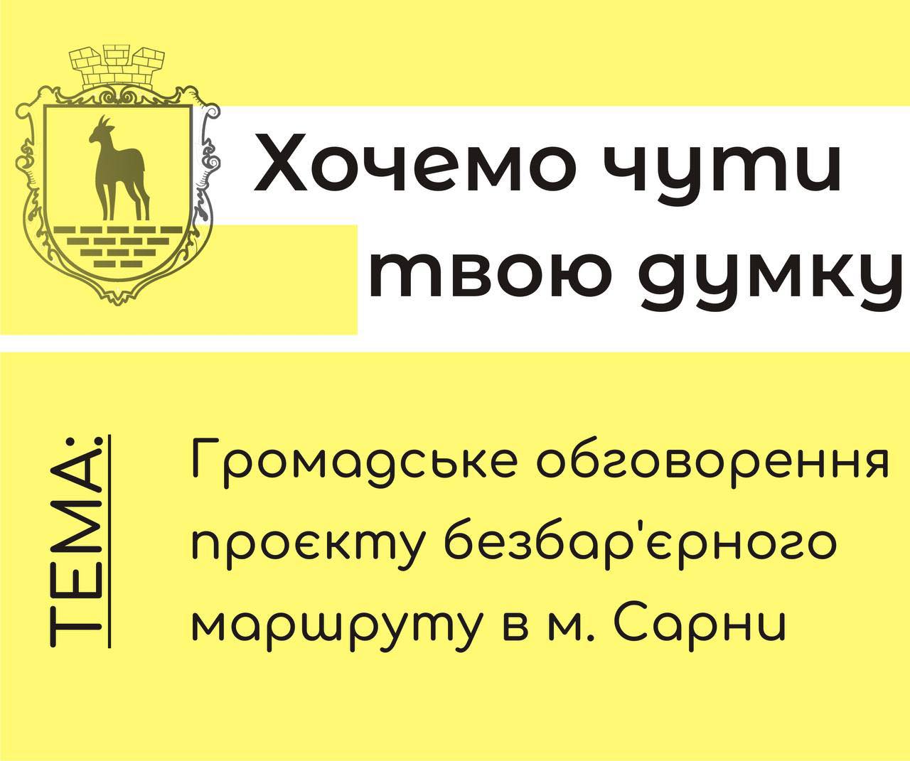 Детальніше про процес обговорення можна дізнатися за посиланням: https://sarny-rada.gov.ua/pres-centr/19671-informacijne-povidomlennja-pro-provedennja-gromadskogo-obgovorenja-ta-elektronnih-publichnih-konsultacij-z-gromadskistju-proyektu-bezbaryernogo-marshrutu-v-m-sarni-rivnenskoji-oblasti.html.
