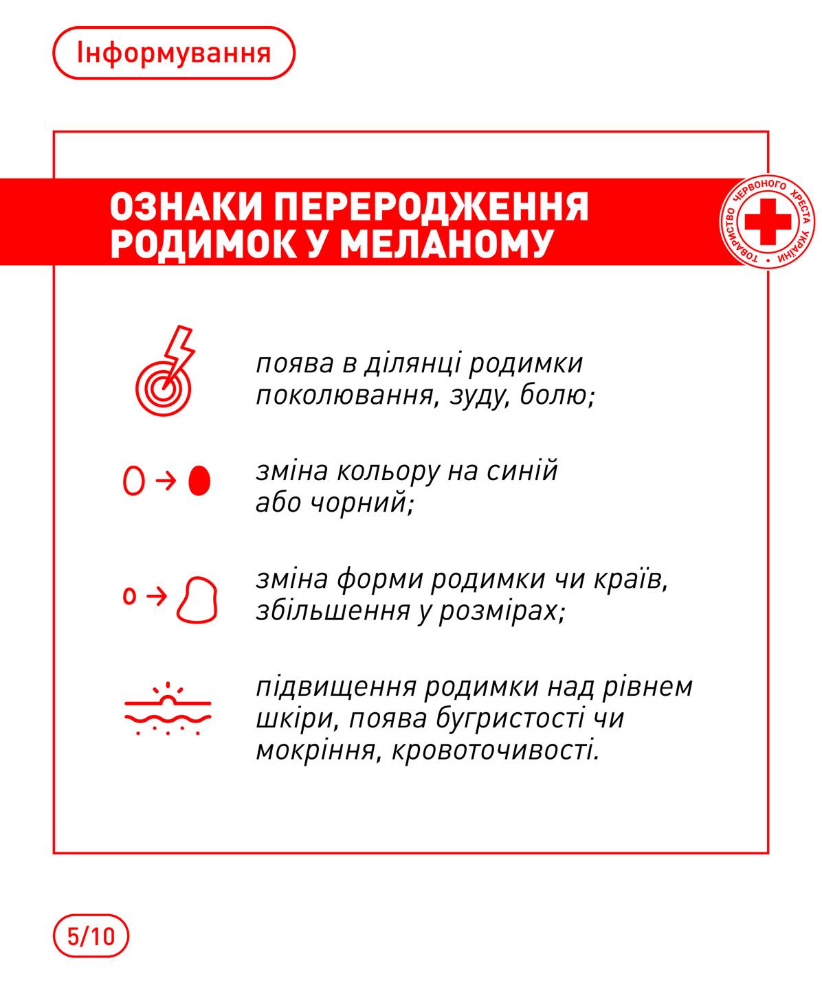 То ж, на що звернути увагу при діагностиці? Як попередити виявлення меланоми? Червоний Хрест України рекомендує дізнатись про це з порад, створених на основі матеріалів Центру громадського здоров’я України, World Health Organization Ukraine та Melanoma Research Foundation.