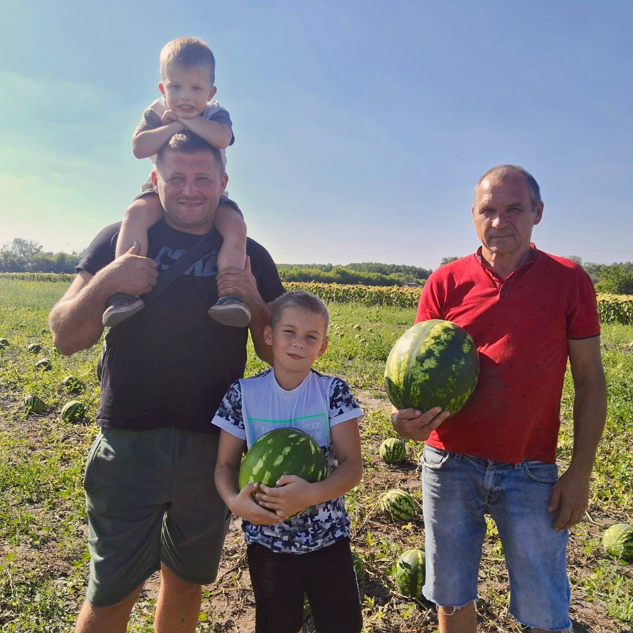 👨👩👧👦 Родина Хорошунів – це приклад працьовитості та відданості своїй справі. Дмитро, його дружина та мама працюють у сфері освіти, а вдома підростають двоє маленьких дітей. Незважаючи на численні клопоти, ця дружна сім’я завжди серед перших відгукується на потреби громади та активно долучається до благодійних зборів для Збройних Сил України. Вони неодноразово передавали захисникам великі партії смачних, солодких кавунів, вирощених з любов’ю на щедрій полтавській землі.