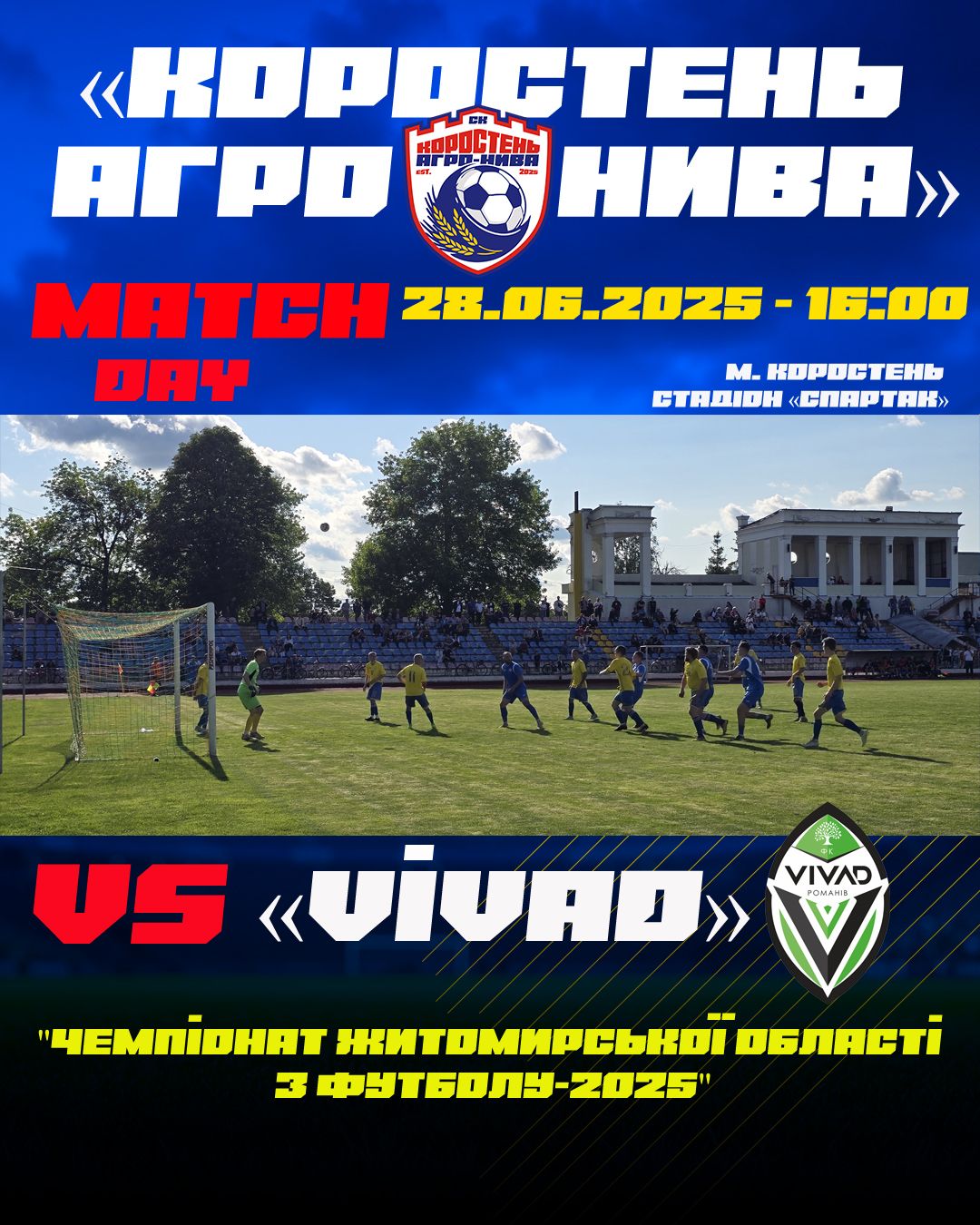 У суботу, 28 червня, о 16:00 на стадіоні “Спартак” у місті Коростень відбудеться одна з найочікуваніших подій у спортивному календарі регіону – центральне протистояння 7 туру Чемпіонату Житомирської області з футболу. Цей матч обіцяє бути справжнім видовищем для всіх шанувальників місцевого футболу та матиме значний вплив на турнірну боротьбу. На футбольному полі зійдуться дві потужні команди: СК Коростень / Агро-Нива та ФК “Vivad” з Романова. Обидва колективи впевнено демонструють свої лідерські амбіції, перебуваючи у верхній частині турнірної таблиці та активно претендуючи на найвищі місця у Чемпіонаті. Це робить їхнє протистояння особливо принциповим та непередбачуваним. Очікується напружений поєдинок, сповнений безкомпромісної боротьби за кожен м’яч на кожному клаптику поля. Вболівальники стануть свідками безлічі гострих моментів, технічних рішень та, безумовно, справжньої футбольної інтриги до останніх хвилин матчу. Для СК Коростень цей домашній матч має подвійне значення, адже підтримка рідних трибун завжди є надзвичайно важливою для команди. Приходьте та створіть незабутню атмосферу, яка надихатиме наших гравців на нові звершення. Цей матч – не просто чергова гра, це подія, що об’єднає громаду Коростеня навколо спільної пристрасті до футболу. Підтримайте улюблений клуб, станьте частиною великої футбольної родини. Адже саме ваша енергія та віра в команду є ключем до успіху. Запрошуємо всіх вболівальників та просто любителів якісного спорту прийти та підтримати нашу команду у цьому важливому домашньому матчі. Ваша присутність на стадіоні є неоціненною! Це чудова нагода насолодитися атмосферою справжнього футбольного свята у Коростені. 📍Стадіон: “Спартак”, м. Коростень 🕓 Початок гри: 16:00 📅 Дата: субота, 28 червня Не пропустіть нагоду побачити живий, емоційний футбол Коростеня! Разом до перемоги! Кожен гол, кожен пас, кожен сейв – це мить, яка залишається в історії місцевого футболу. Давайте разом напишемо нову сторінку у літописі спортивних досягнень нашого міста. Приходьте та отримайте незабутні враження від справжнього спортивного свята. Буде гаряче! Це важливий матч для розвитку футболу Коростеня та підняття духу громади.