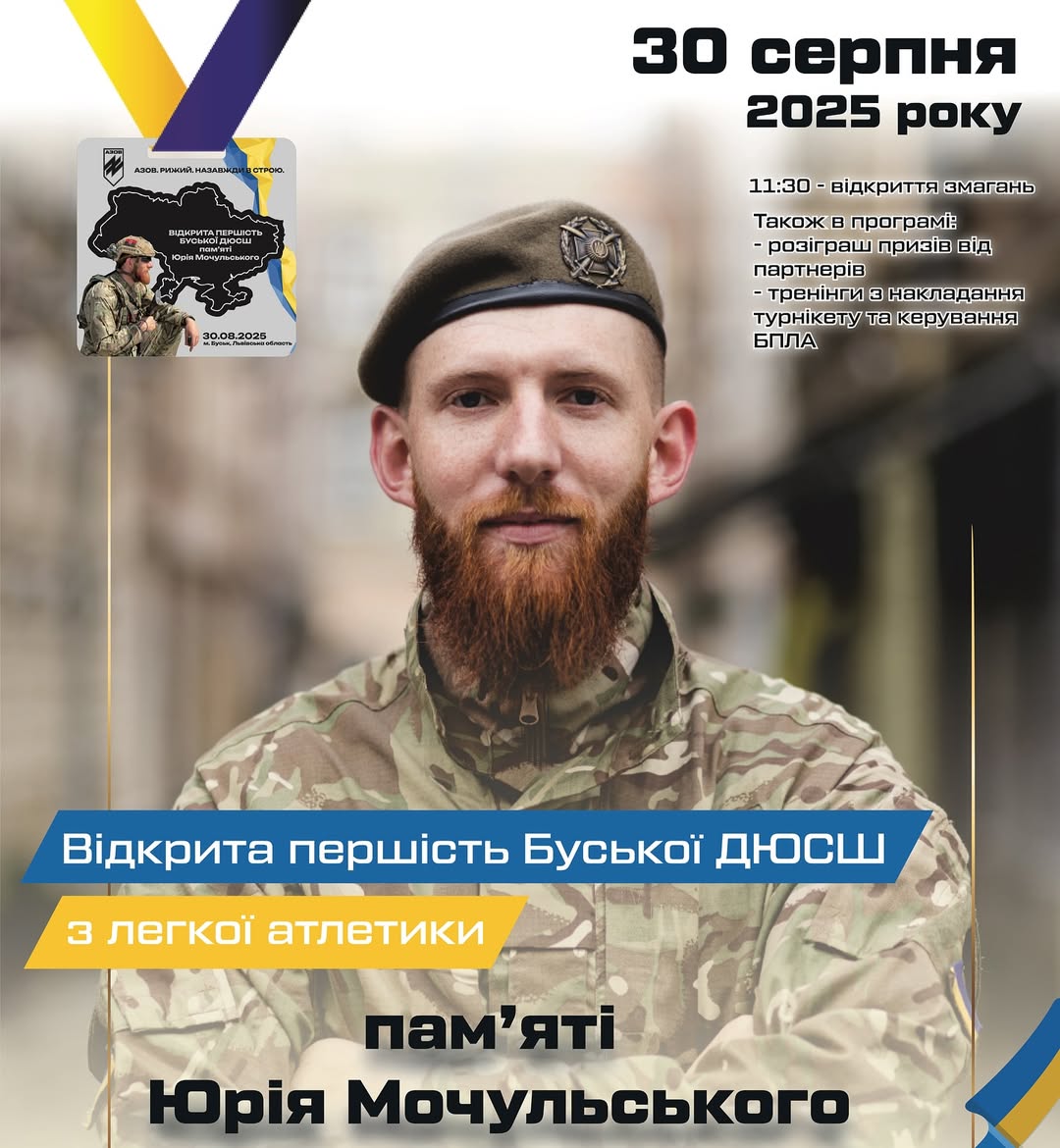 ✅У суботу, 30 серпня, на стадіоні Буської дитячо-юнацької спортивної школи відбудеться Відкрита першість Буської ДЮСШ з легкої атлетики пам’яті Юрія Мочульського — видатного українського військовослужбовця, нашого земляка, мешканця села Купче. Юрій був талановитим спортсменом-легкоатлетом, який присвятив своє життя боротьбі за незалежність та територіальну цілісність України. Початок заходу заплановано на 11:30.