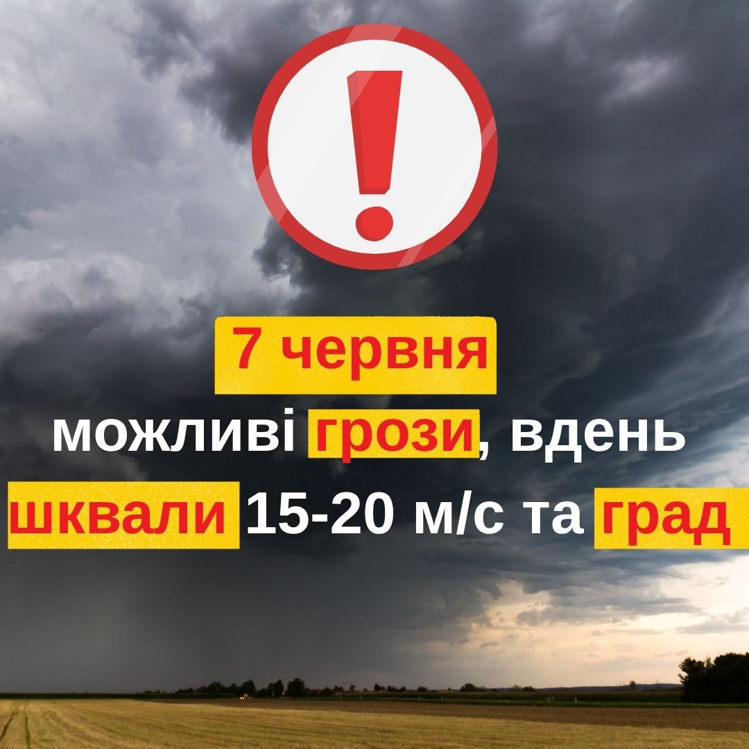 Увага, Чернігів та Чернігівська область! 7 червня очікується погіршення погодних умов. Синоптики попереджають про грози, а вдень місцями можливі шквали вітру 15–20 м/с та град. Будьте пильними та обережними, щоб уникнути неприємностей!