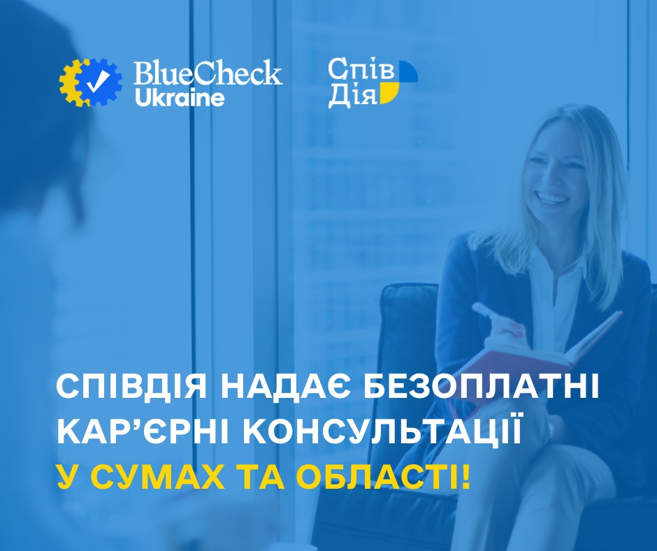 Благодійний фонд «СпівДія» у партнерстві з BlueCheck Ukraine реалізує загальнонаціональну програму безкоштовної кар’єрної підтримки. Головна мета програми – допомогти українцям відновити впевненість у власних силах, знайти стабільне джерело доходу та відчути підтримку у своїй нелегкій, але важливій справі.