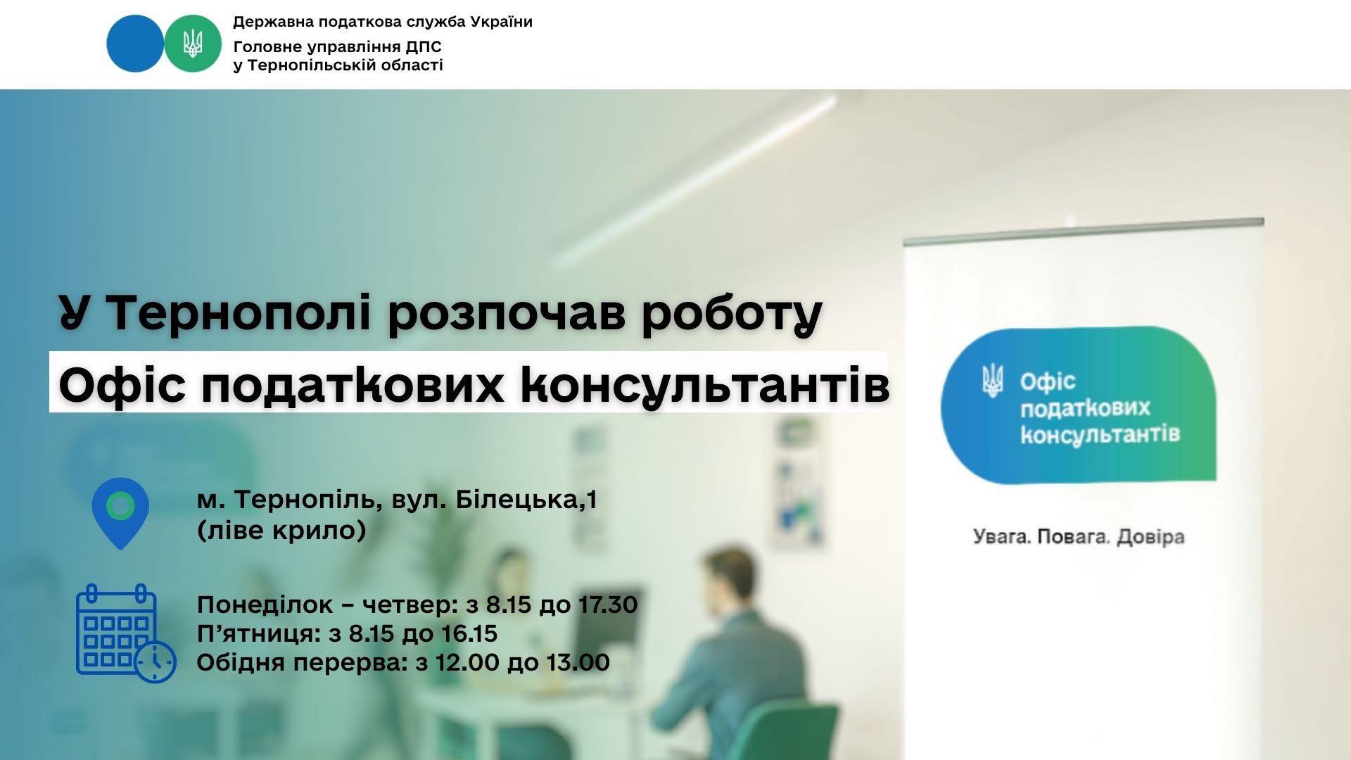 🔵🟢 В Тернополі розпочав роботу Офіс податкових консультантів, новий сервіс від Державної податкової служби України, покликаний стати надійним партнером для бізнесу та громадян. Головна мета цього інноваційного проєкту — забезпечити своєчасне, повне та максимально зрозуміле інформування платників податків. Офіс спрямований на допомогу в уникненні будь-яких порушень податкового законодавства та суттєве зменшення кількості потенційних конфліктних ситуацій. Це, в свою чергу, має на меті перетворити звичну взаємодію між податковою службою, бізнесом та громадянами на справжнє партнерство, засноване на довірі та взаєморозумінні.