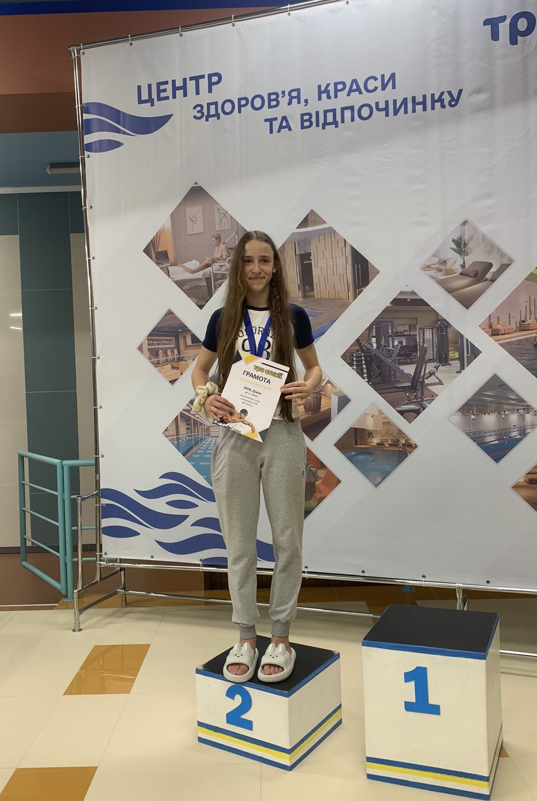 Ляпун Софія виборола третє місце на дистанції 200 метрів комплексним плаванням, показавши відмінну підготовку та волю до перемоги. Янів Діана здобула два срібла: на дистанціях 50 метрів вільним стилем та 50 метрів на спині. Її успіх є результатом наполегливої праці та підтримки тренера. Підготував спортсменів тренер ДЮСК Павлів Ігор, чия майстерність та досвід внесли вагомий вклад у досягнення юних плавців.