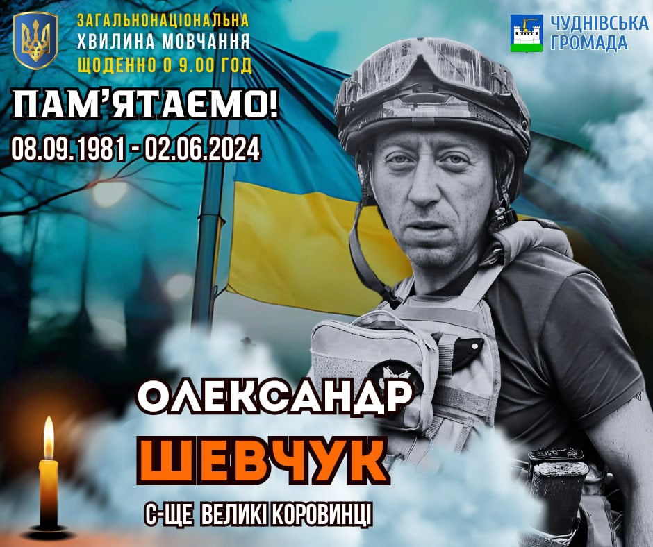 🇺🇦🕯У хвилину мовчання вшануймо світлу пам’ять Героїв Чуднівської громади, які ціною власного життя виборювали незалежність, суверенітет та територіальну цілісність України.