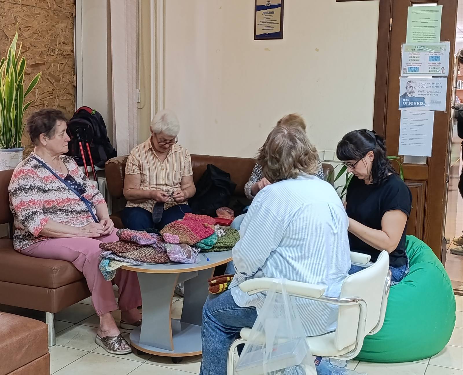 Волонтери в’яжуть для ЗСУ у бібліотеці Солом’янки