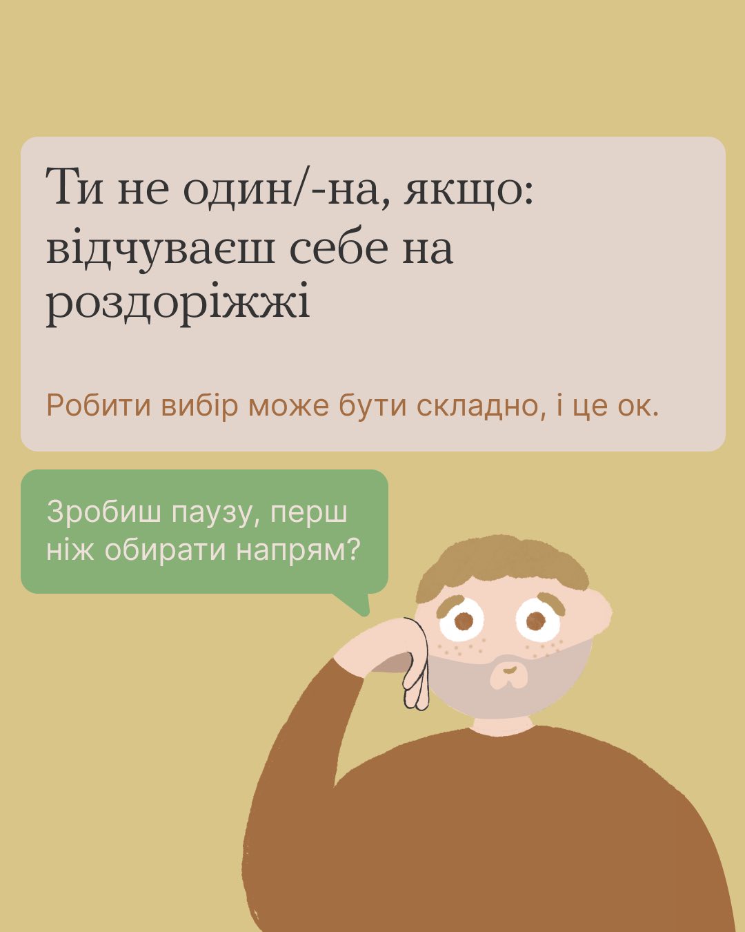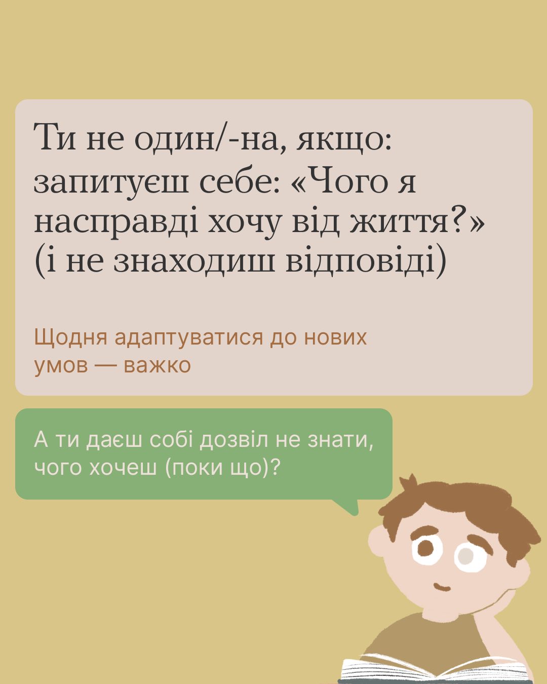 ❤️🩹 У складні часи війни, коли кожен день приносить нові виклики, часто відчувається розгубленість і невизначеність щодо майбутнього. Це не ознака слабкості, а скоріше відображення реальності життя в умовах щоденної нестабільності, що об’єднує мільйони українців. Важливо пам’ятати, що ви не самотні у своїх переживаннях і пошуках. Багато хто відчуває подібне, навіть якщо про це не завжди говорять відкрито.
