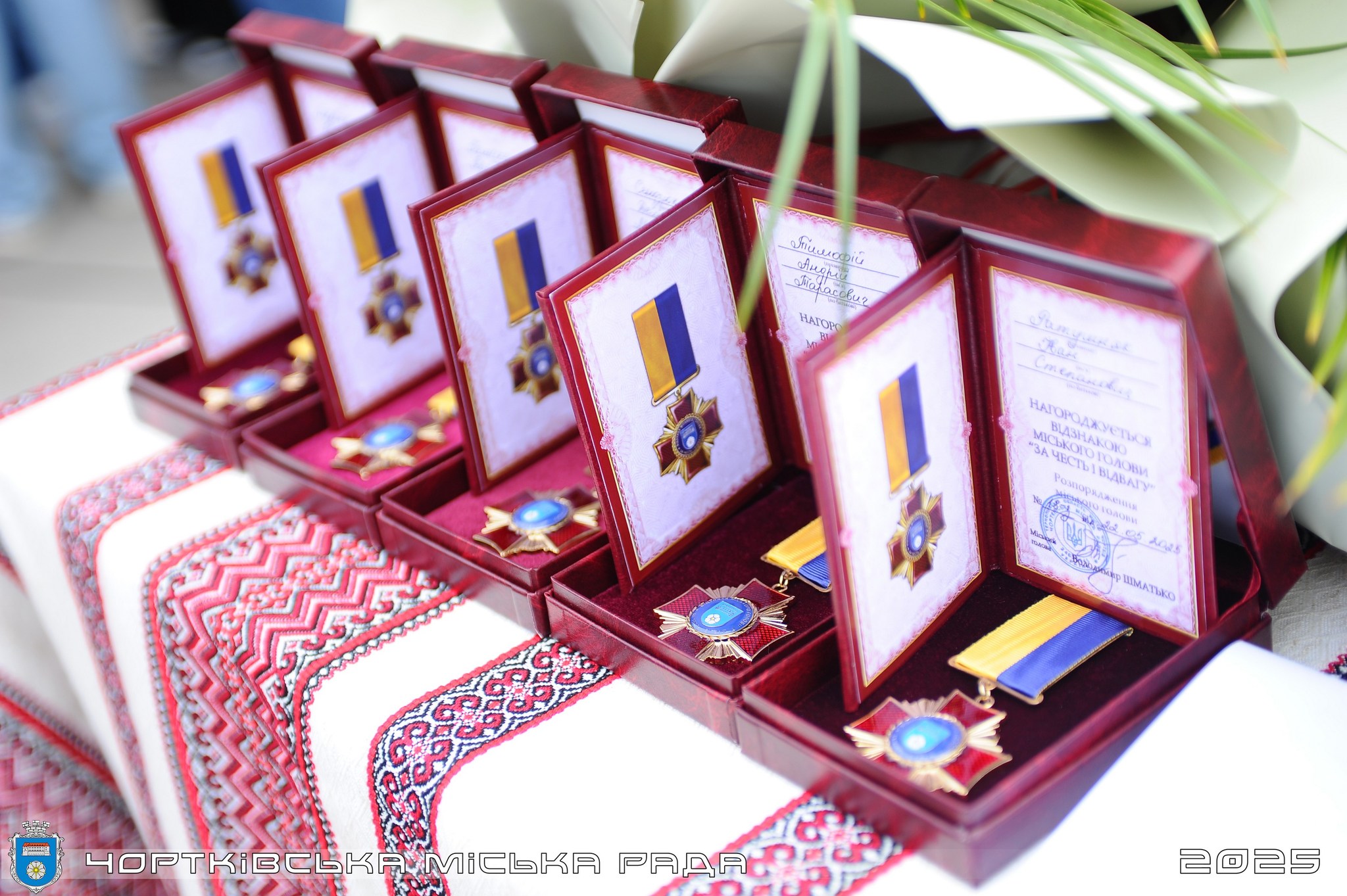 Міський голова Володимир Шматько вручив найвищі міські нагороди «За честь і відвагу» військовослужбовцям Чортківської громади, відзначивши їхню мужність та героїзм у захисті України: