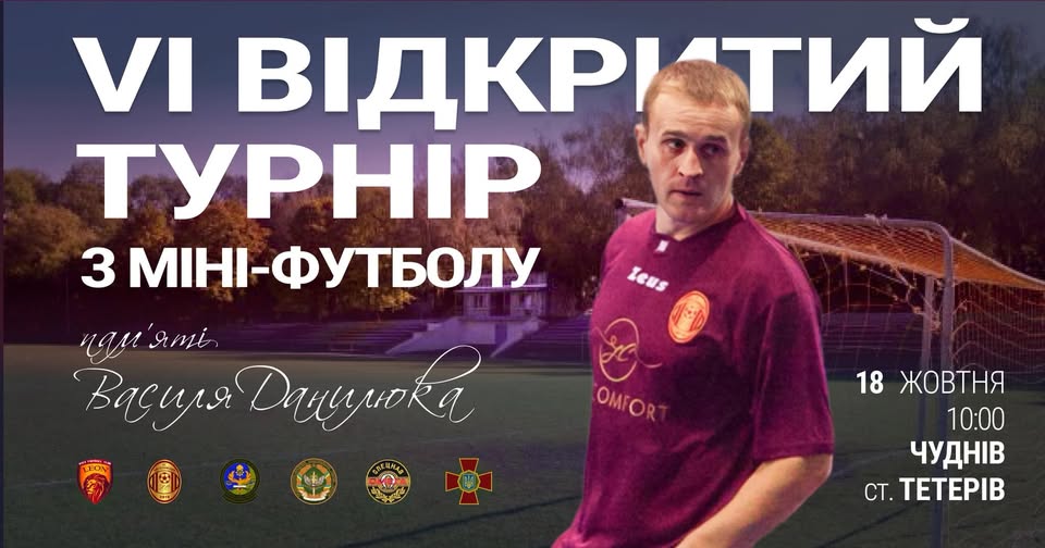 18 жовтня на стадіоні «Тетерів» пройде щорічний турнір з мініфутболу. Цей захід є вшануванням пам’яті нашого земляка-чуднівчанина Василя Данилюка – людини, яка була щирим другом, активним спортсменом та справжнім патріотом своєї громади. Його внесок у розвиток спорту та активне життя громади залишив яскравий слід.