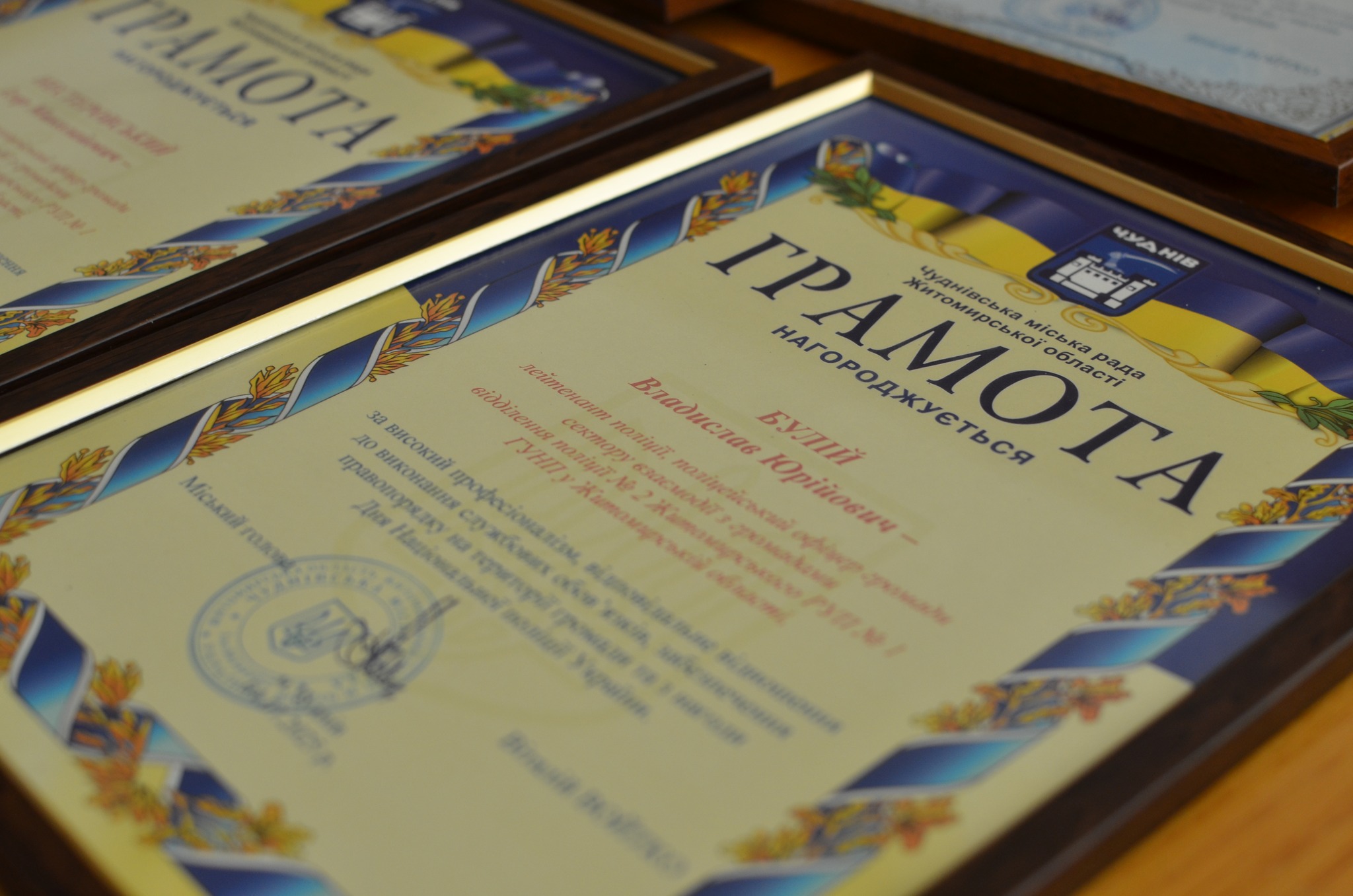 Поліцейські відділення поліції №2 (м. Чуднів) Житомирського РУП №1 отримали грамоти та подяки – за вагомі результати службової діяльності, відданість Присязі, професіоналізм та щоденне забезпечення безпеки, прав і свобод громадян.