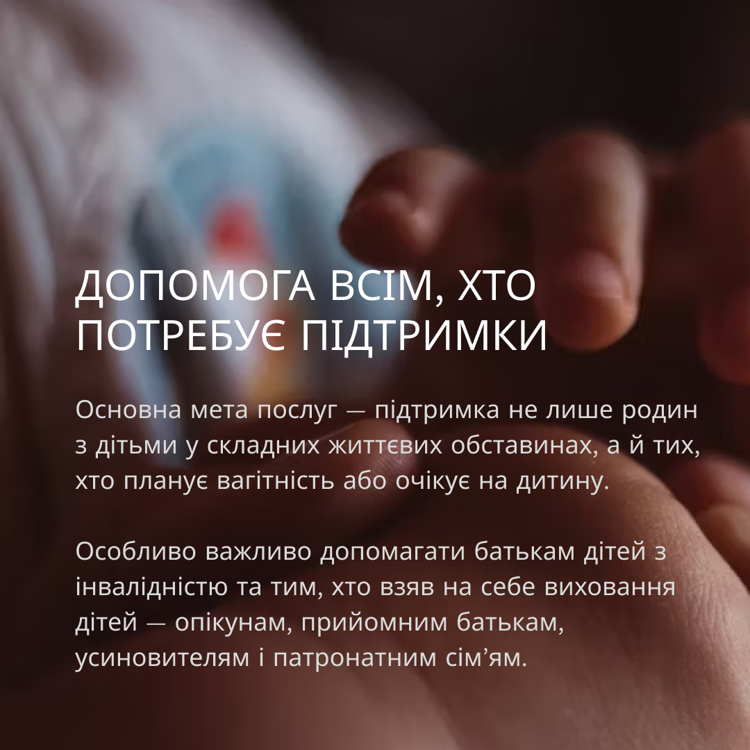 🟩 Кризове втручання – швидка та ефективна допомога у випадках, коли сім’я опинилася у надзвичайно складній ситуації, що загрожує її благополуччю.