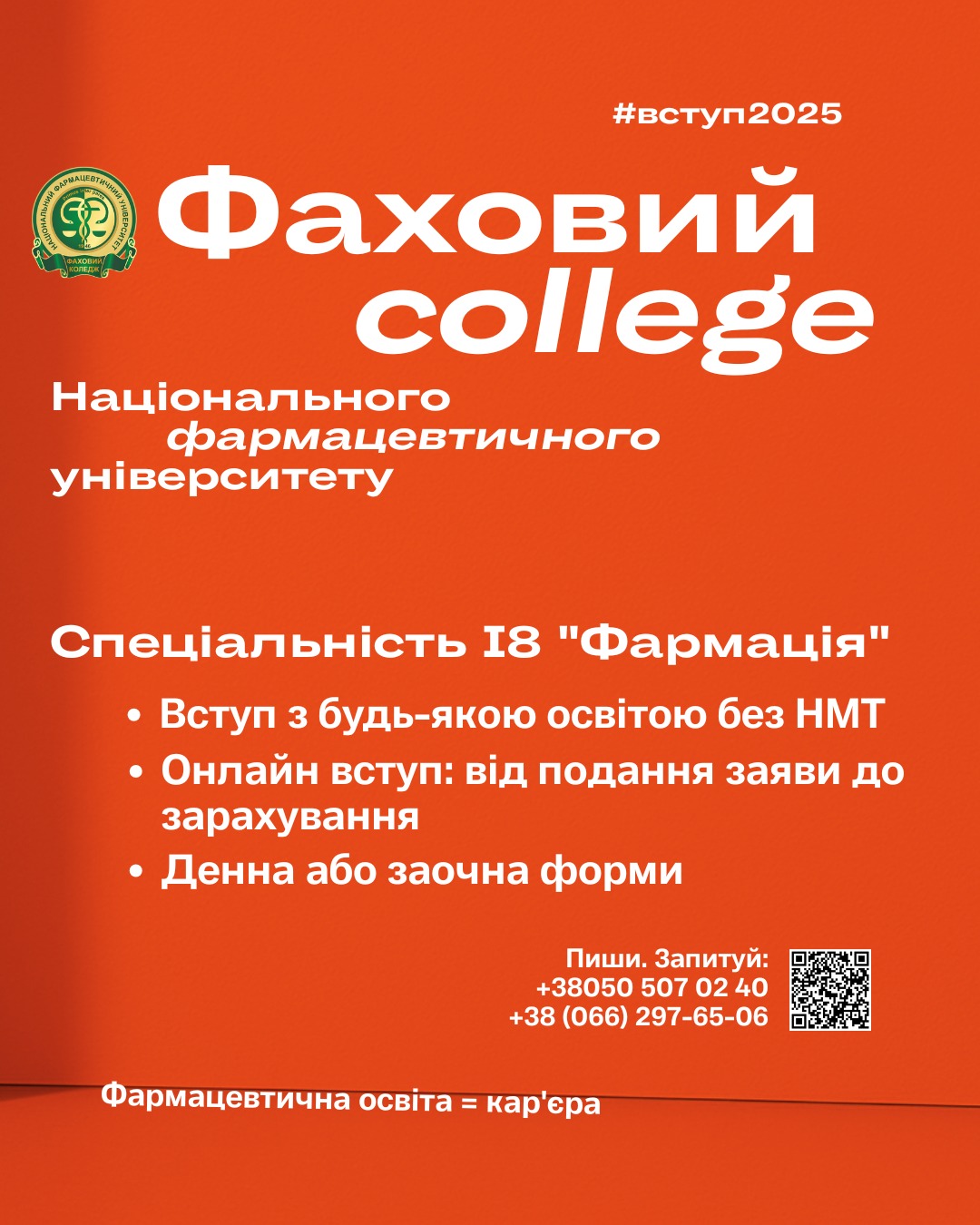 Фаховий коледж Національного фармацевтичного університету — ВСТУПАЙ БЕЗ НМТ з бу…