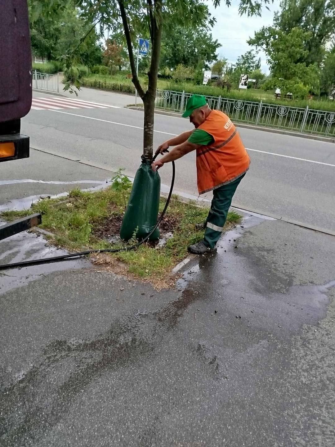 💧 Фахівці КП по УЗН Дніпровського району щоденно працюють над підтримкою зелених насаджень, забезпечуючи їх необхідною вологою. Особливу увагу приділяють ефективному поливу за допомогою спеціальних мішків.