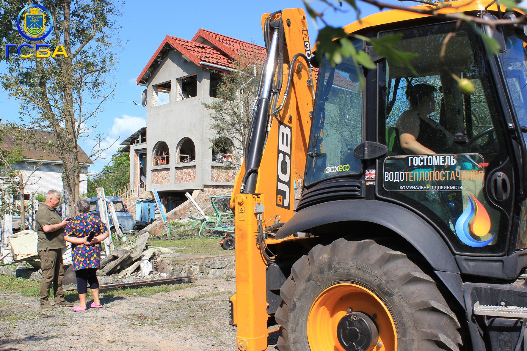 Фахівці комунальних підприємств Гостомельської громади продовжують ліквідацію наслідків нічної атаки дронів